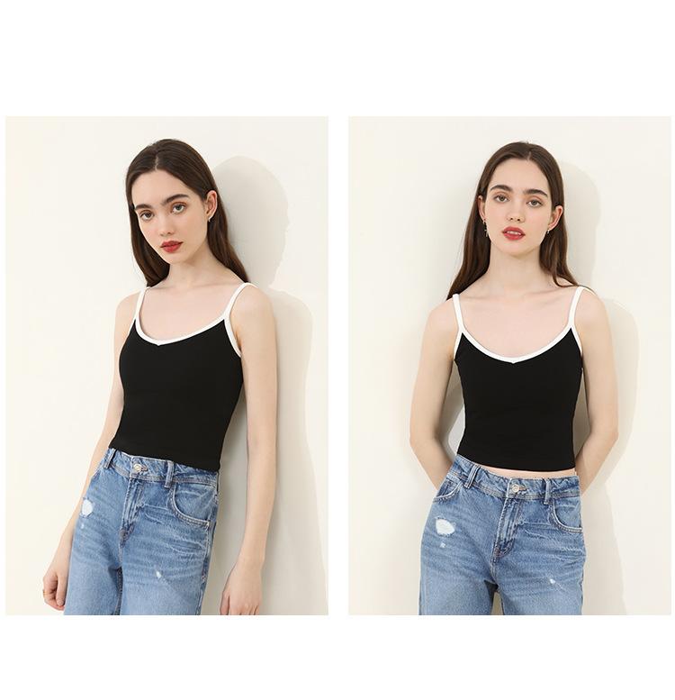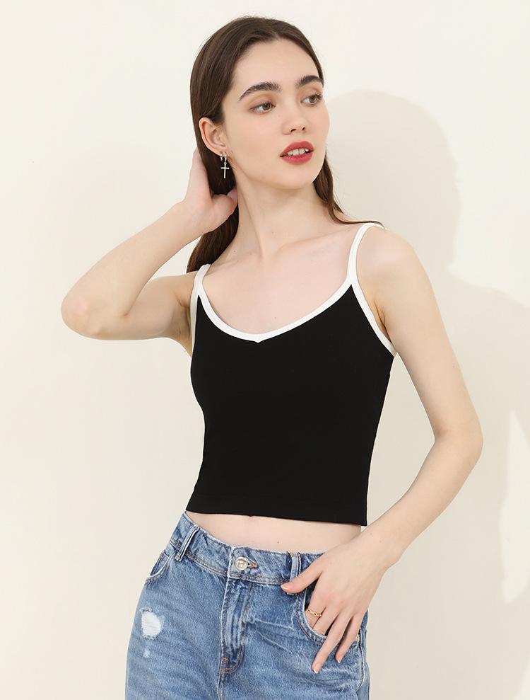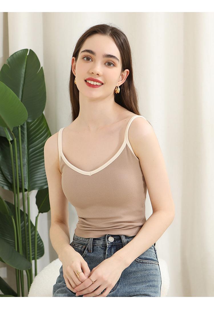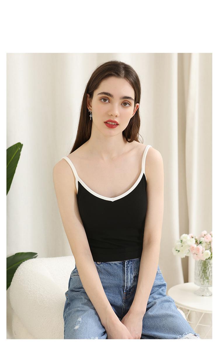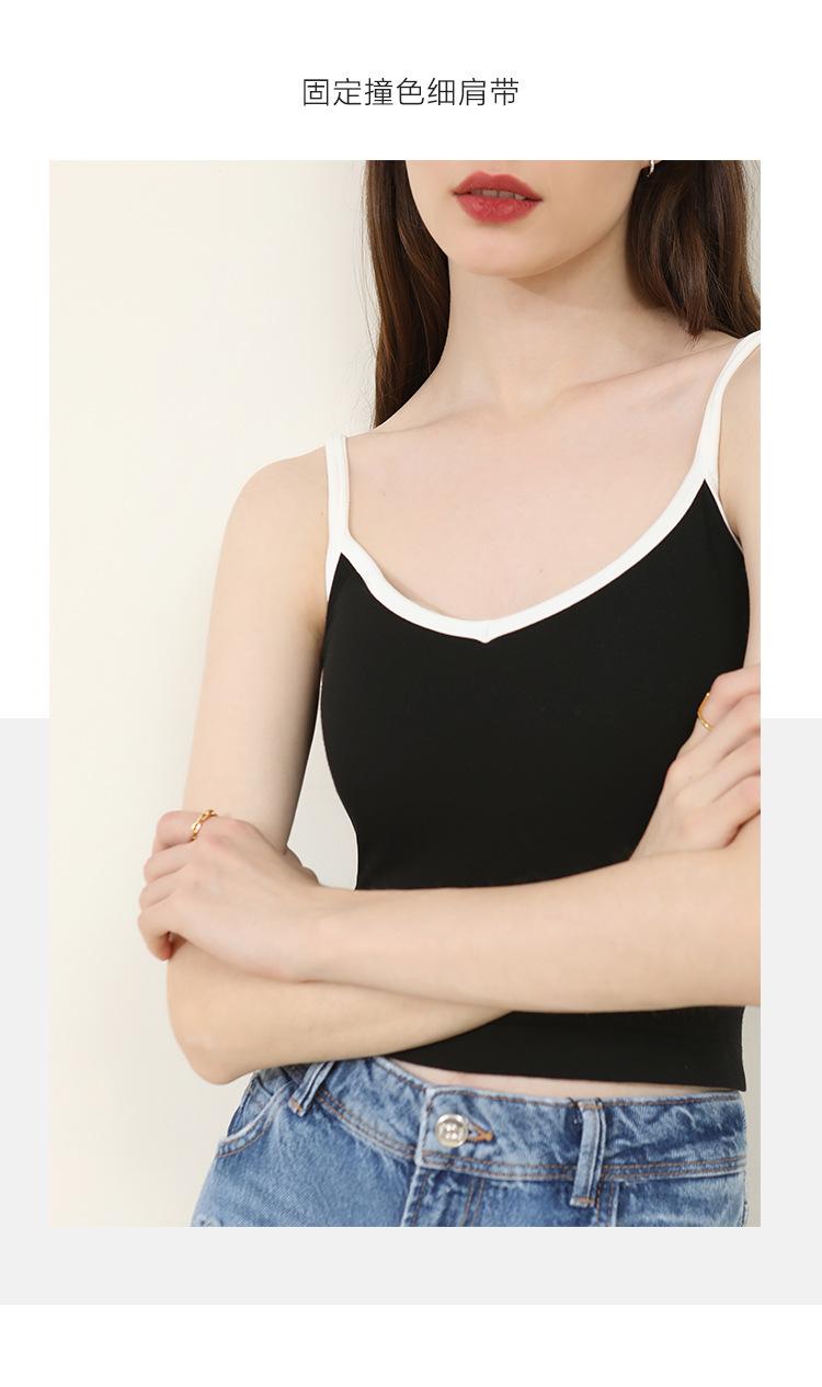 Camisola de mujer, recién llegada, corta, con escote en V y almohadilla para el pecho, ajustada, para uso exterior, con base interior, estilo atractivo.