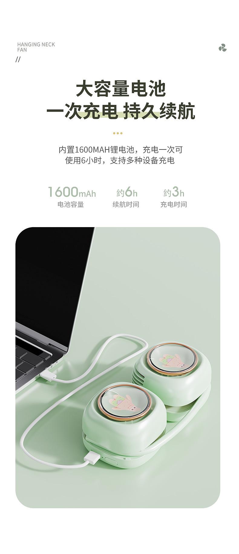 Mini Ventilador Portátil de Cuello Colgante Transfronterizo Almacenamiento Ventilador de Cuello Portátil Carga USB Perezosa Ventilador Pequeño de Cuello Colgante sin Aspas