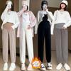 Leggings ajustables cálidos con forro polar estilo coreano para mujeres embarazadas, pantalones capri para mujeres embarazadas de otoño e invierno, talla grande, moda, pantalones de mamá