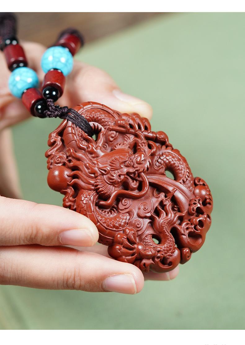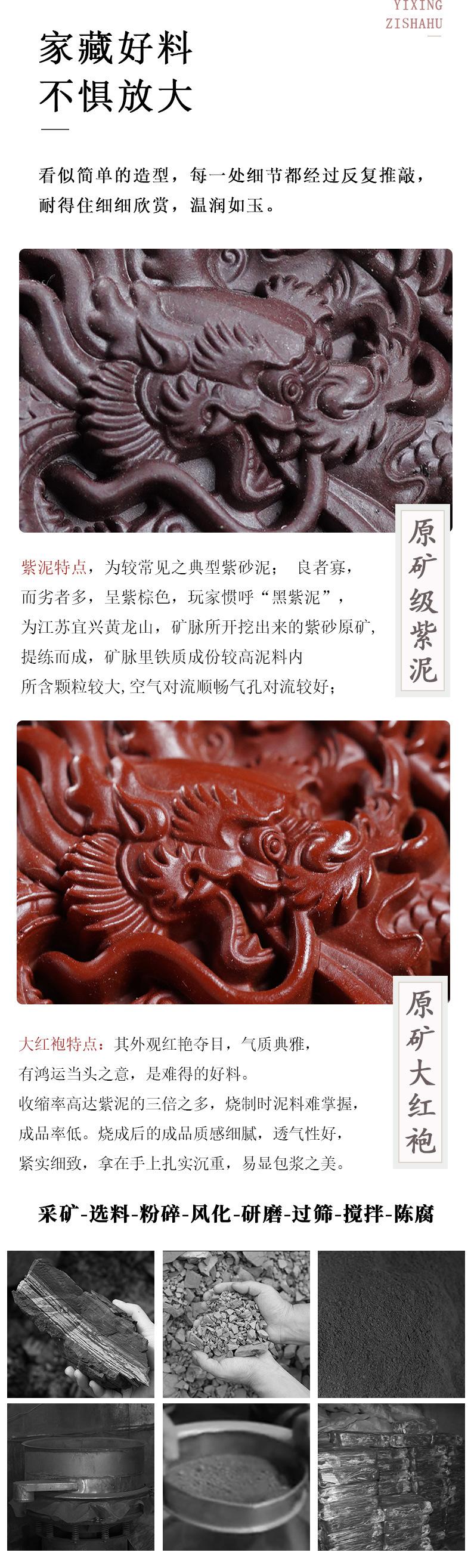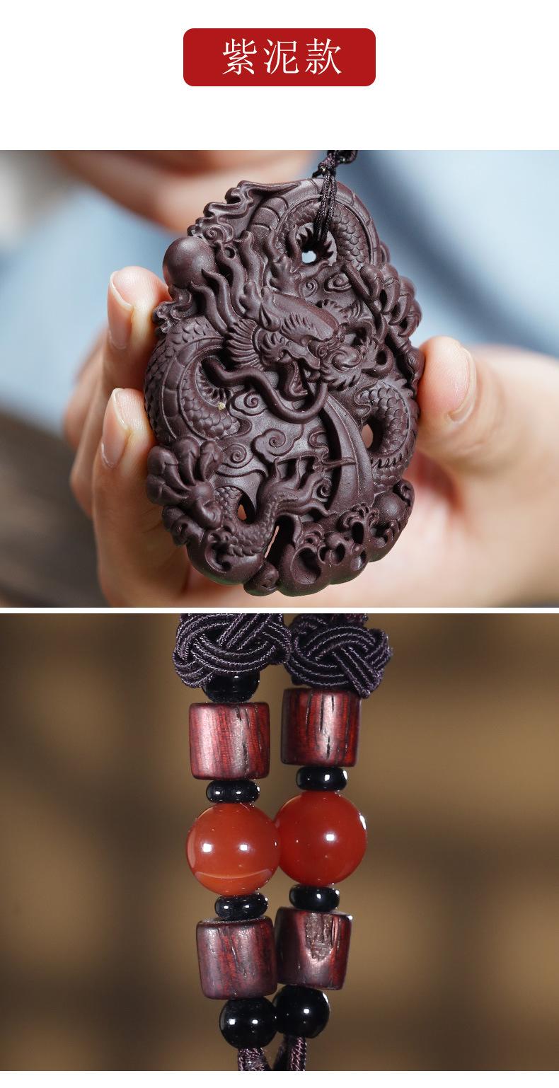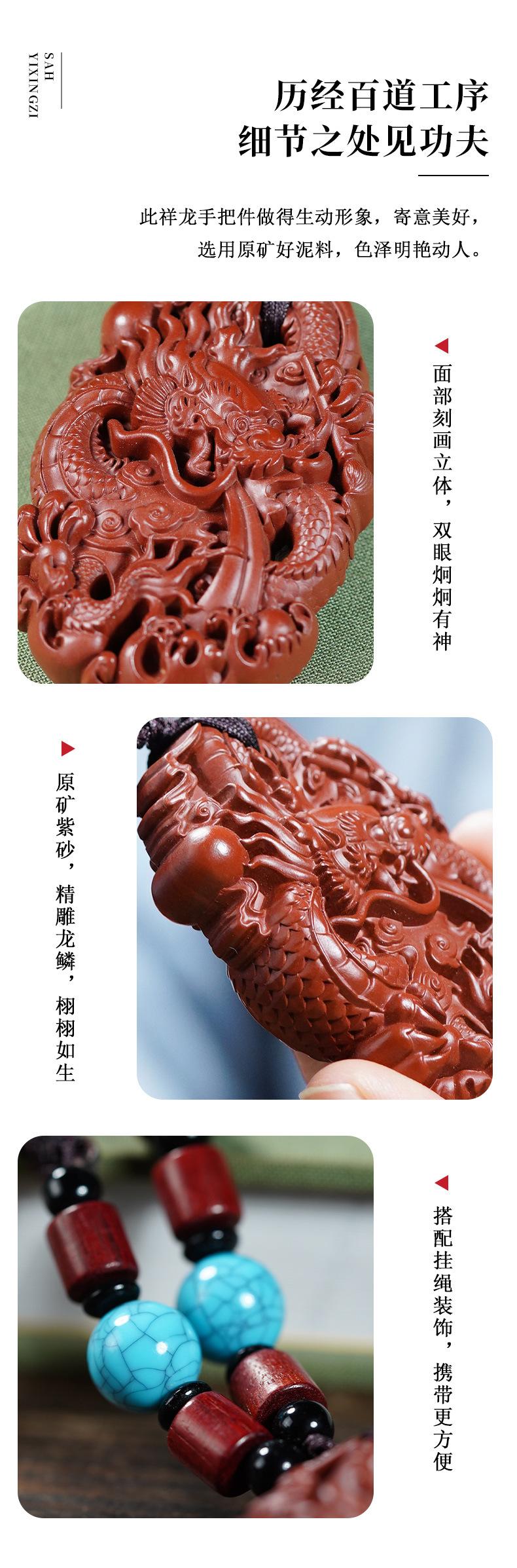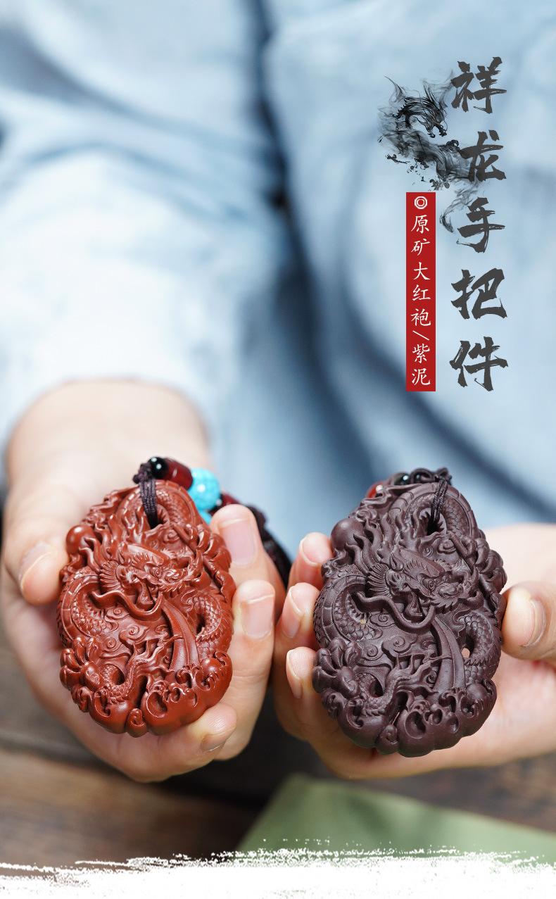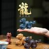 Yixing arena púrpura adornos para mascotas de té al por mayor colgante creativo para juego de té mineral crudo túnica roja asa en forma de dragón