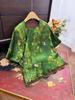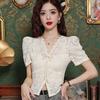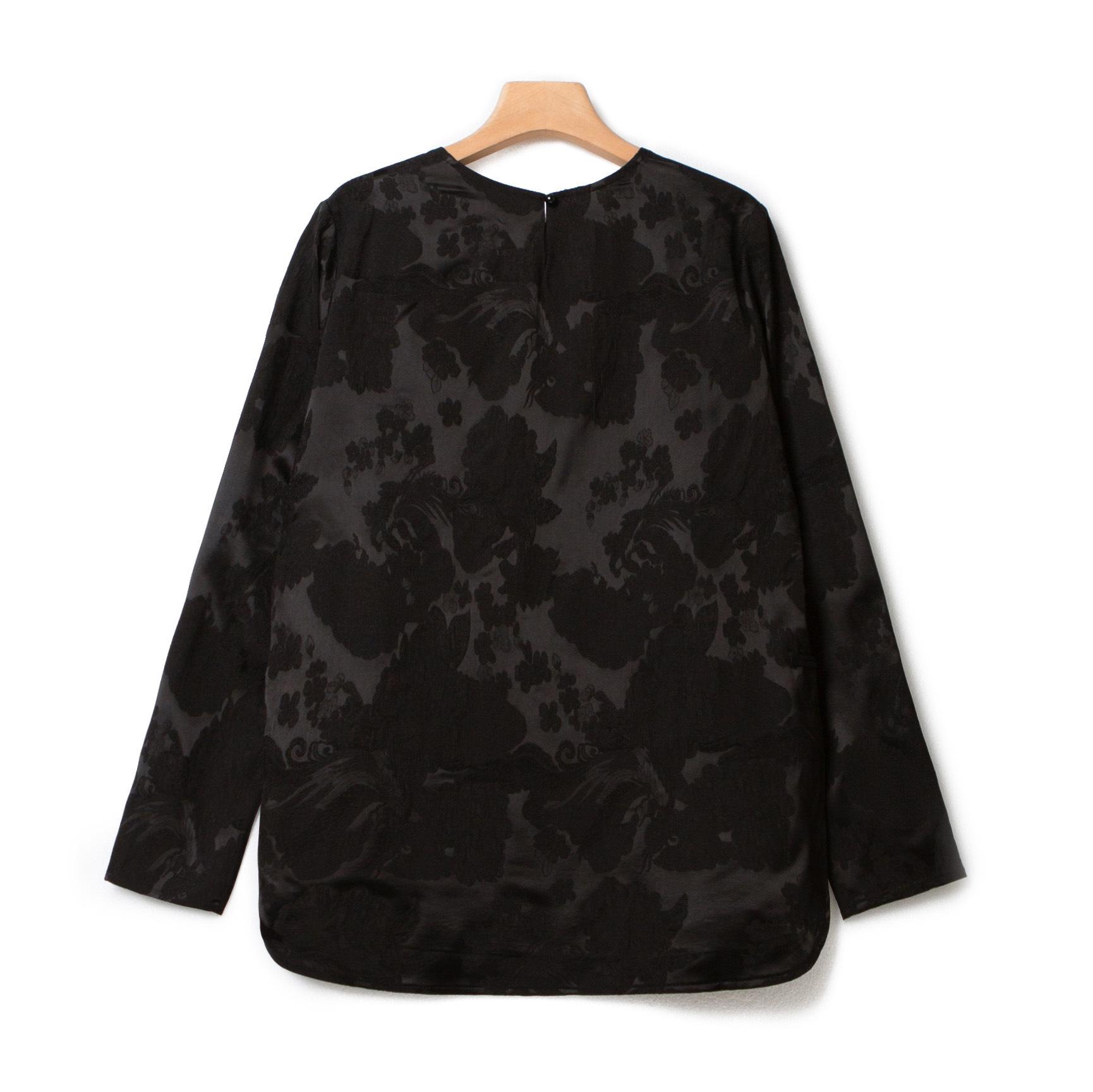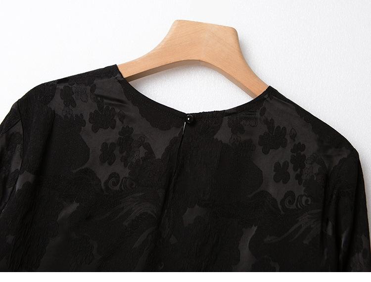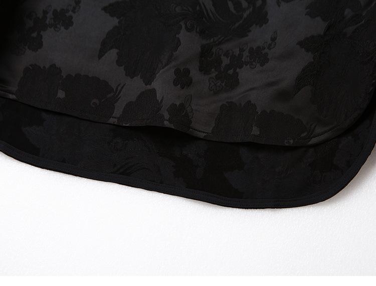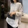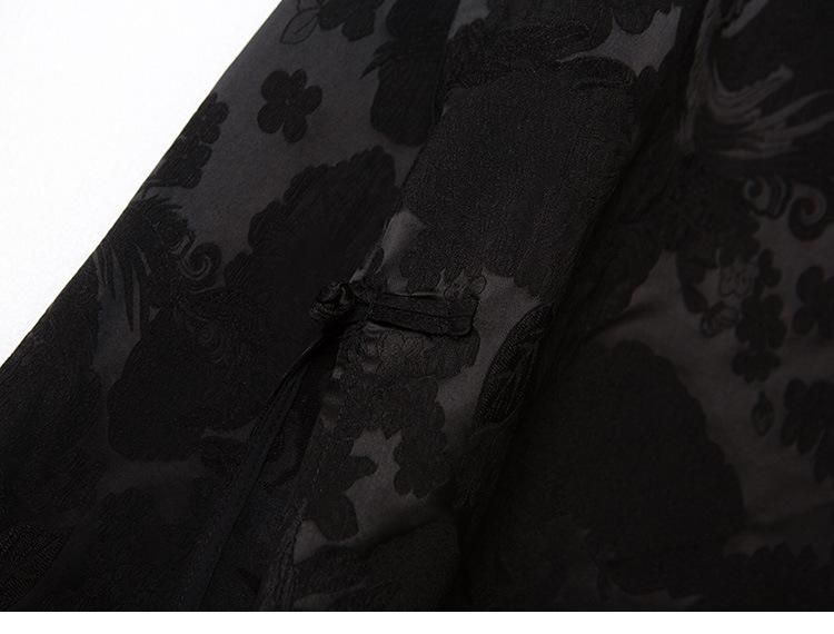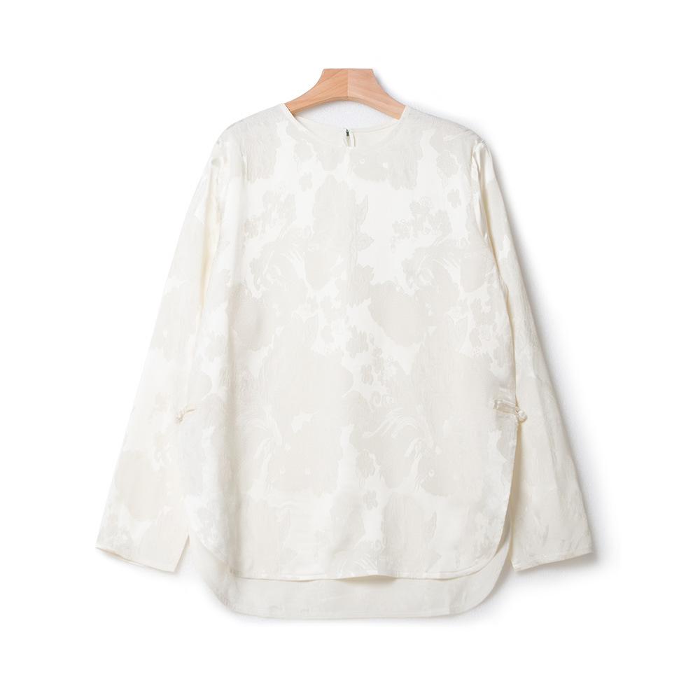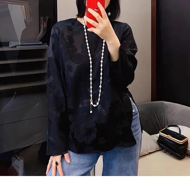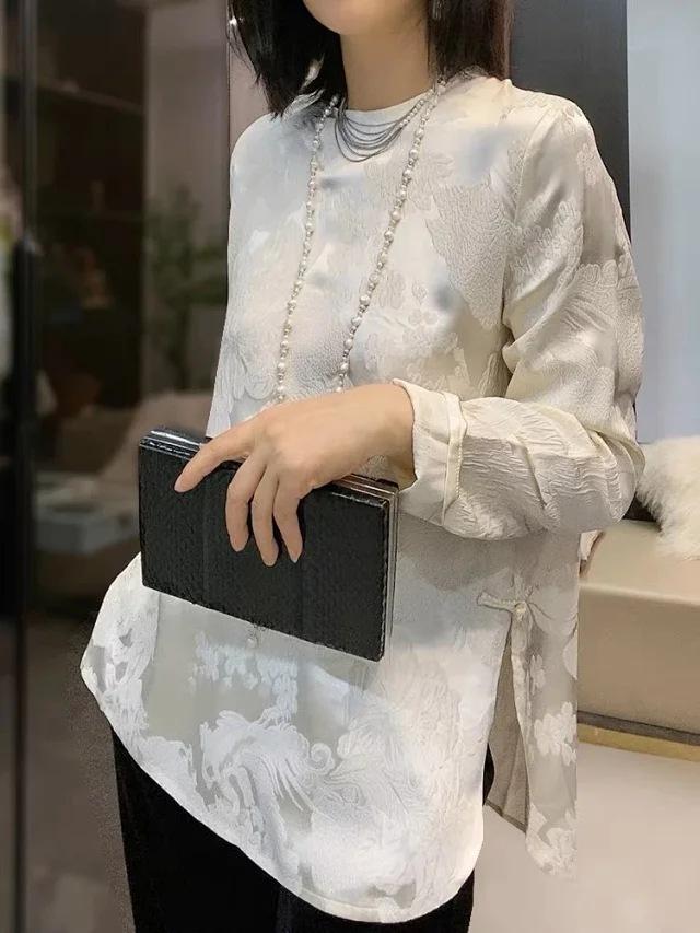 Top Nuevo para Mujer de Estilo Chino con Bordado Exquisito y Jacquard, Cuello Redondo, Abotonado, Camisa de Seda de Manga Larga