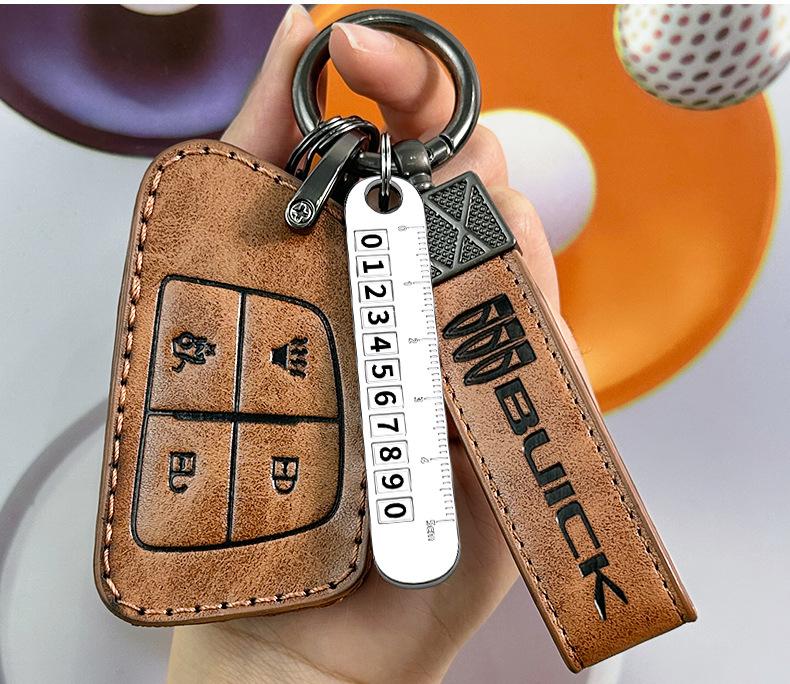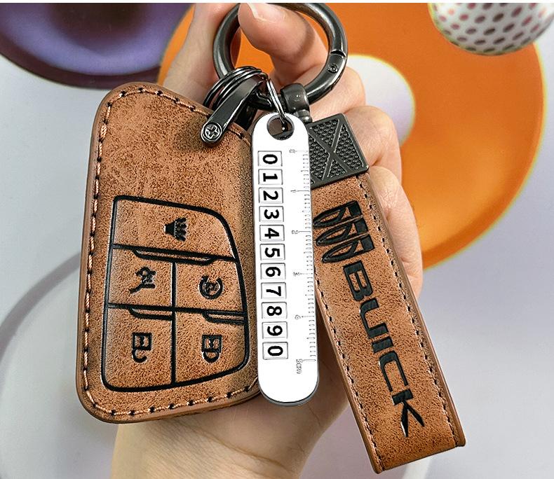 Buick I [fashion Gray] Key case + car logo lanyard + metal ruler number plate, Buick I [high-grade Brown] Key ...