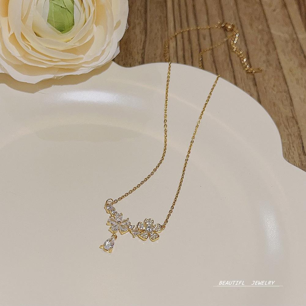 Compra Collar de acero de titanio de estilo coreano para mujer, diseño de nicho, collar ligero de lujo, cadena de clavícula versátil de alta calidad, colgante de pétalo con temperamento al por mayor en Joom.pro