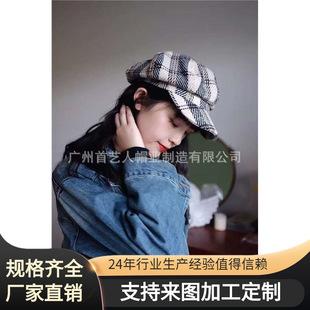 Sombrero de otoño e invierno para mujer versión coreana 2022 versátil cálido sombrero de arrendador para pareja sesión de calle pana sin ala sombrero de repartidor hecho a medida