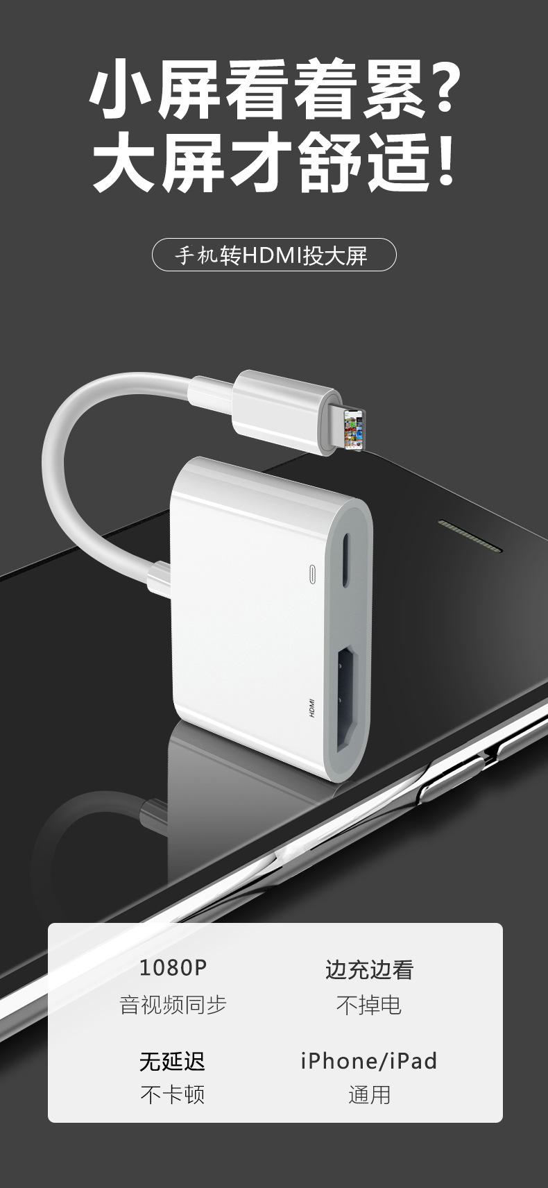 Dispositivo HDMI de pantalla compartida, conexión por cable, conversión de teléfono móvil, visualización en TV de pantalla grande sin retardo, transmisión de pantalla HD
