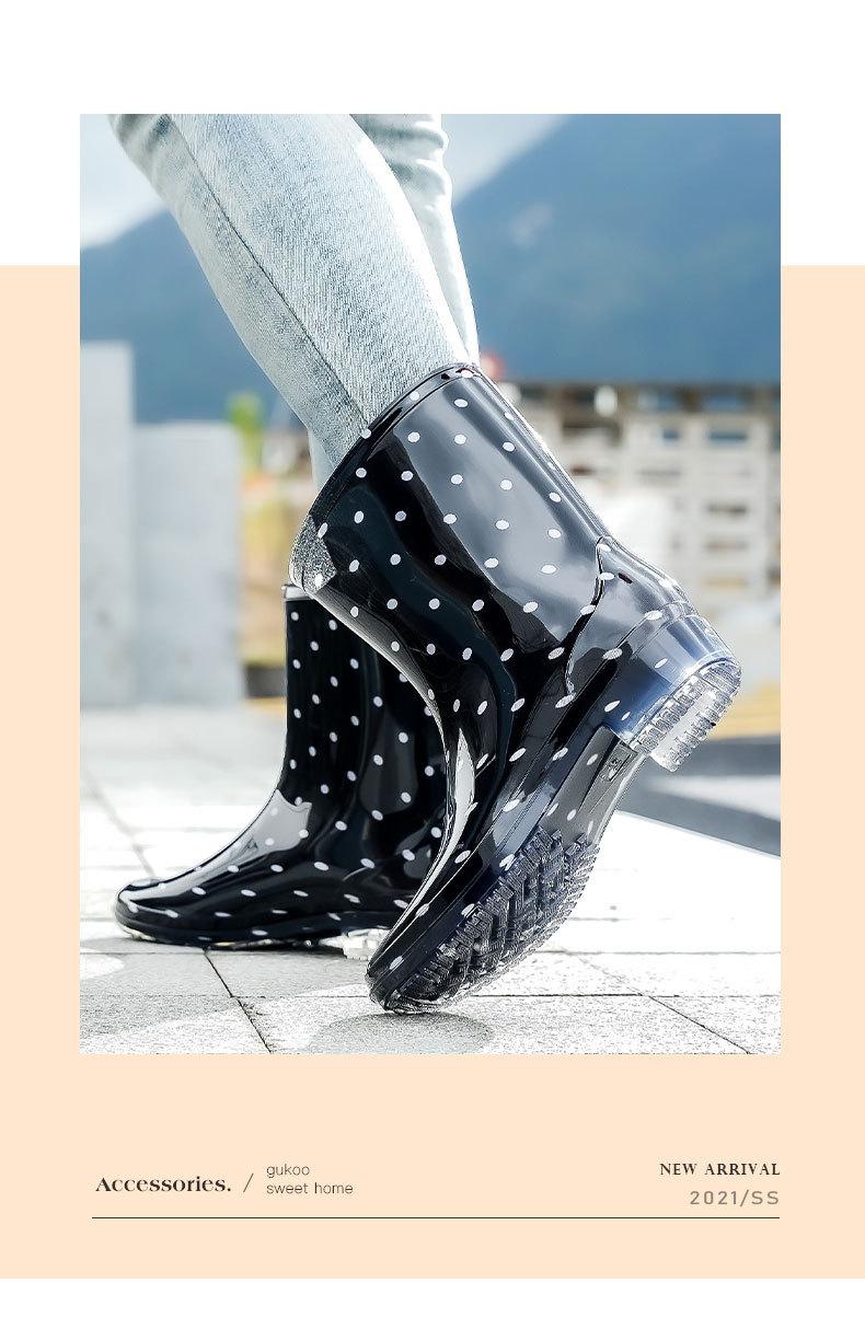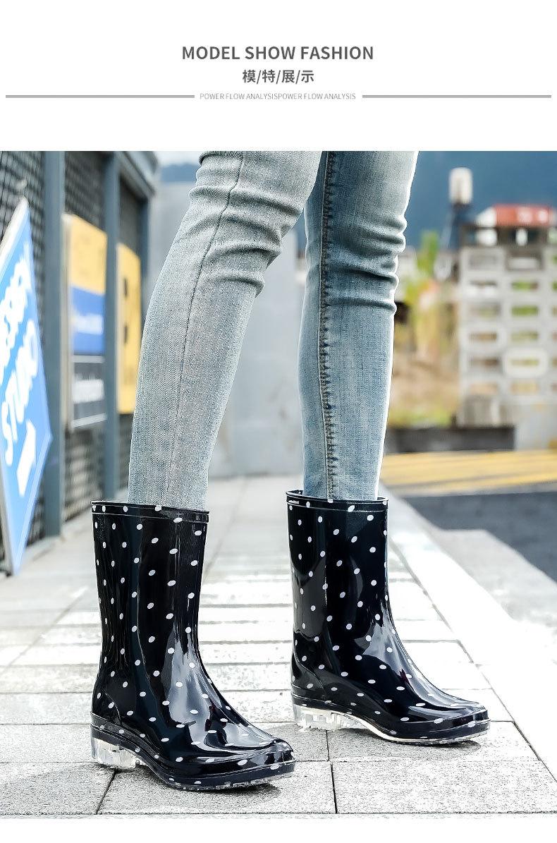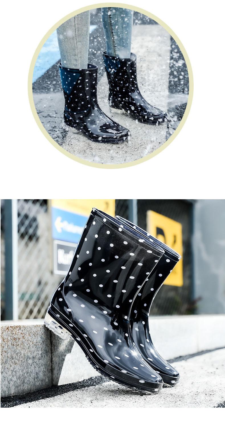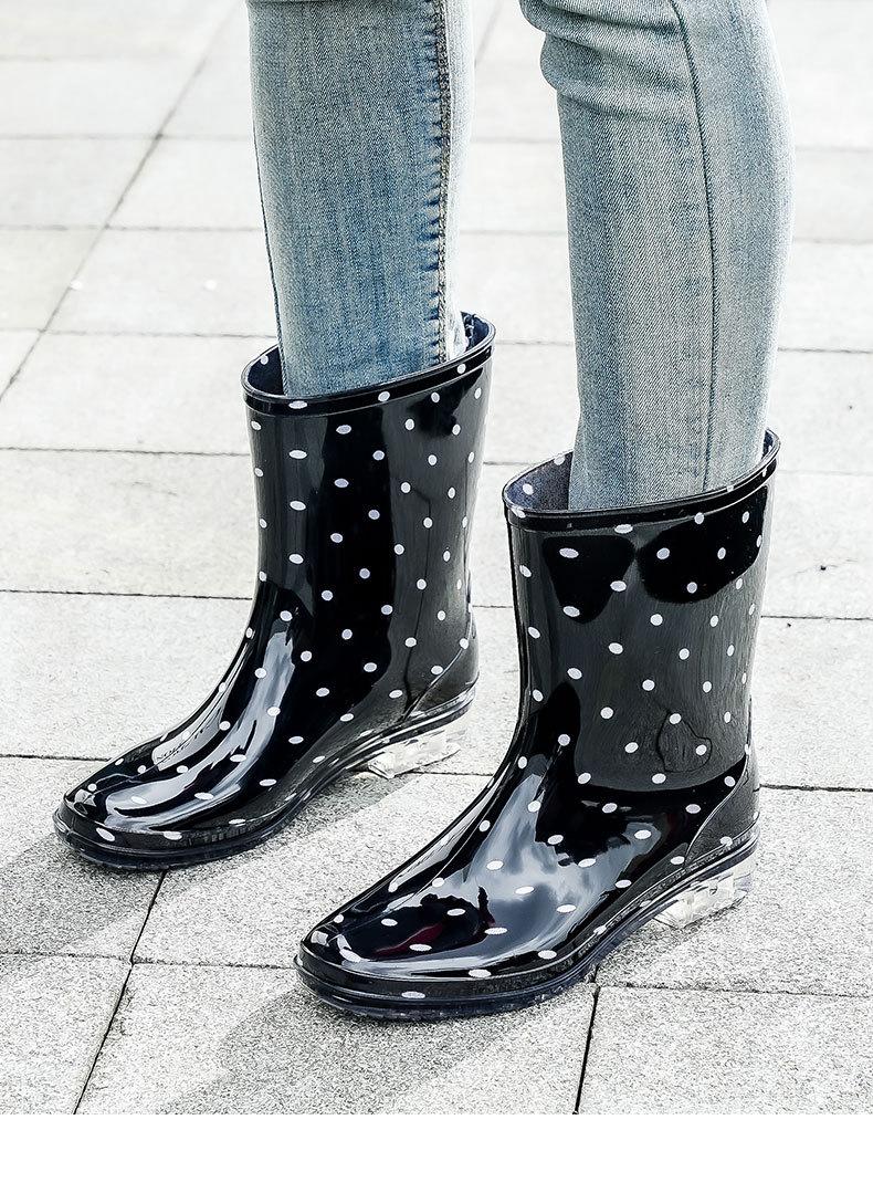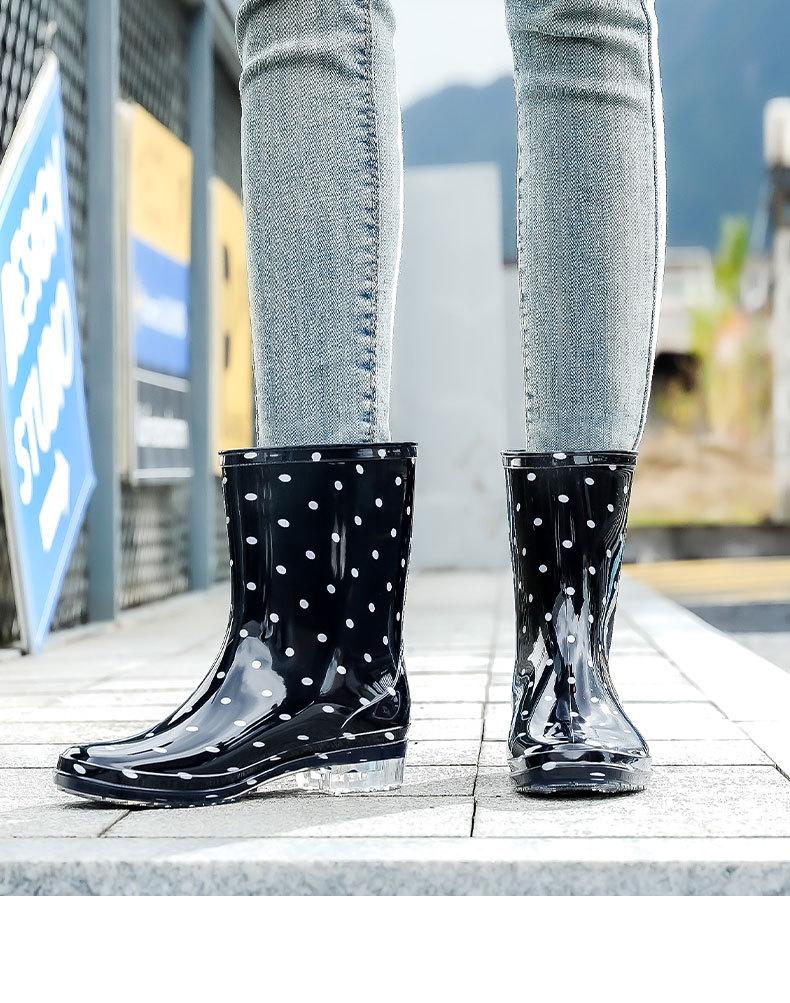 Botas de lluvia antideslizantes para mujer Pvc Lunares grandes Botas de lluvia Zapatos para agua Dropshipping Zapatos de goma impermeables Tacón bajo Moda