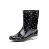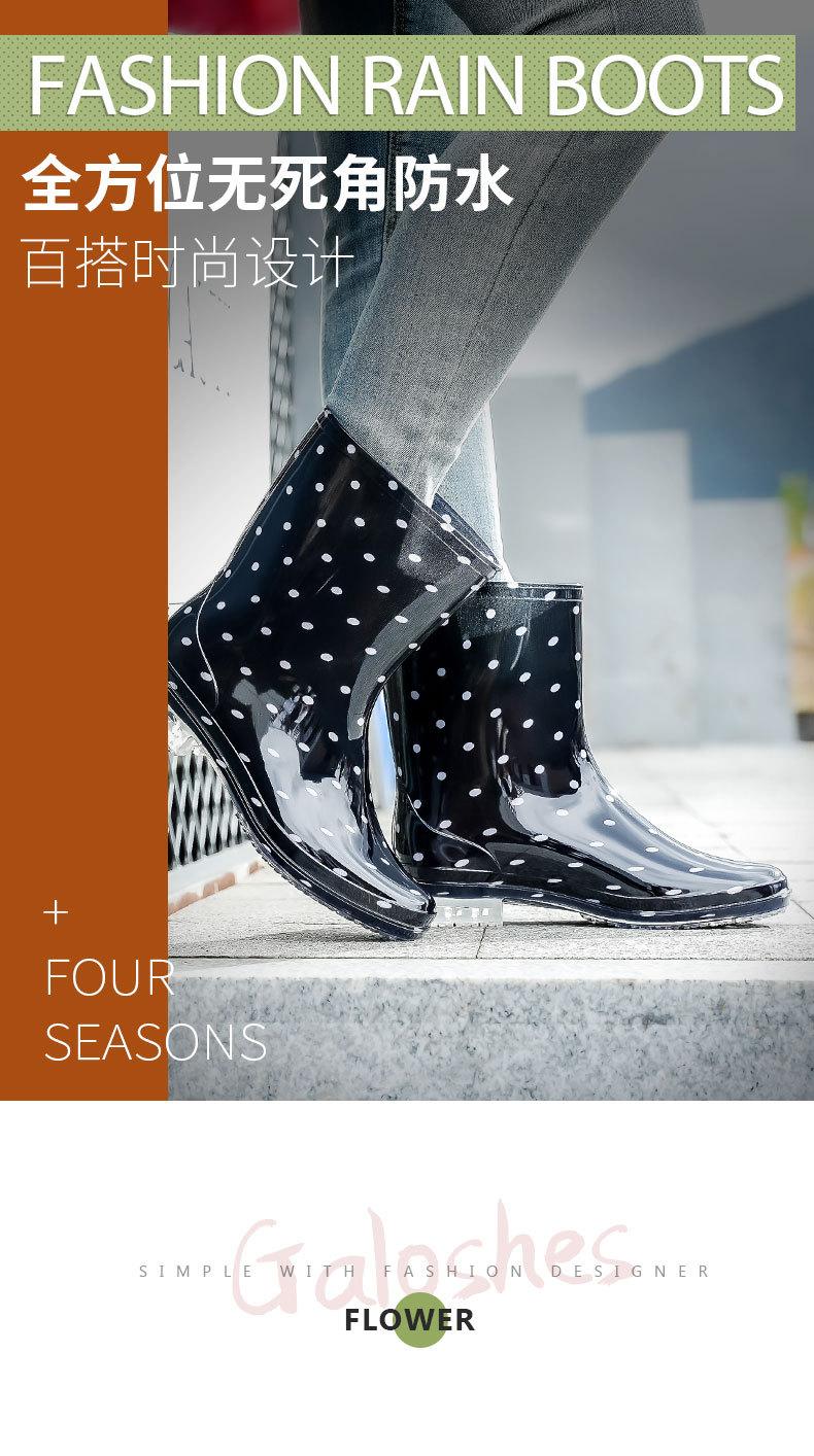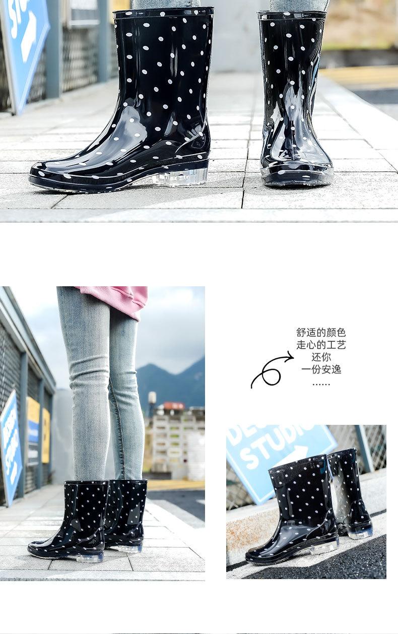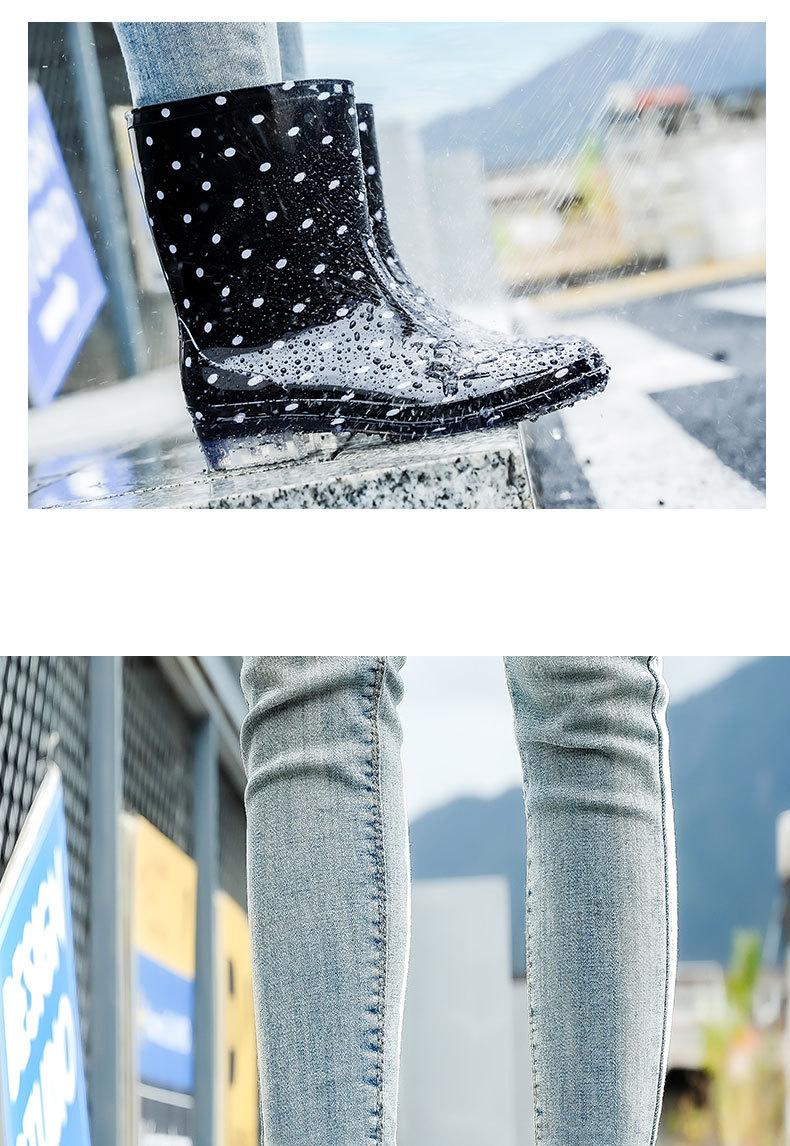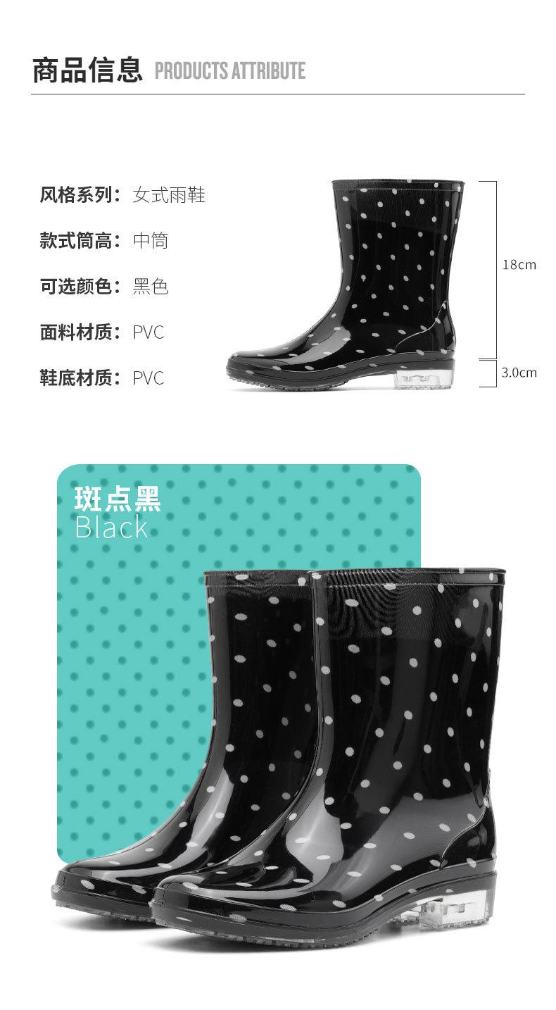 Botas de lluvia antideslizantes para mujer Pvc Lunares grandes Botas de lluvia Zapatos para agua Dropshipping Zapatos de goma impermeables Tacón bajo Moda