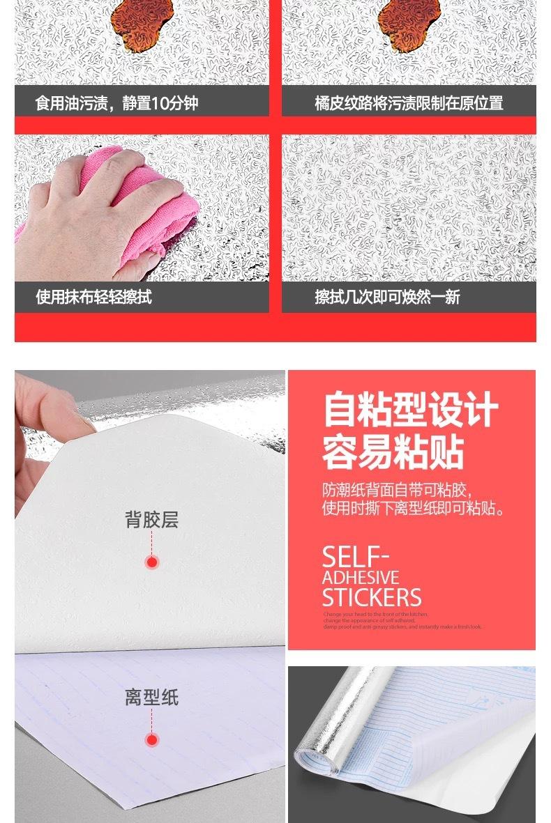 Calcomanía de Cocina a Prueba de Aceite Autoadhesiva Impermeable Resistente a Altas Temperaturas Engrosada para Estufa Doméstica Gabinete Patrón Cáscara de Naranja Calcomanía para Humo de Aceite Papel Tapiz