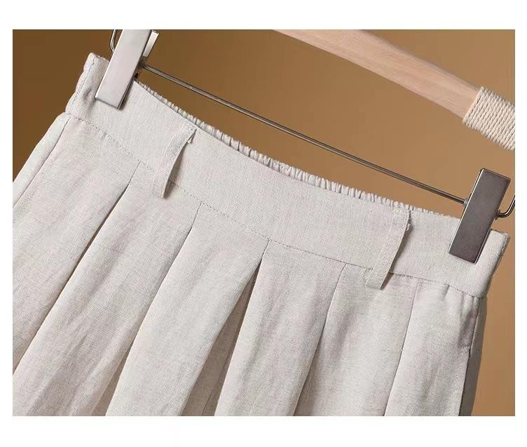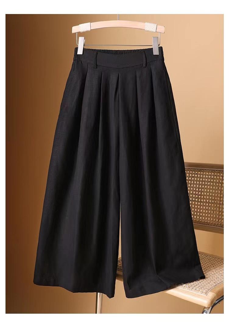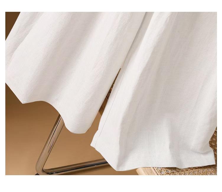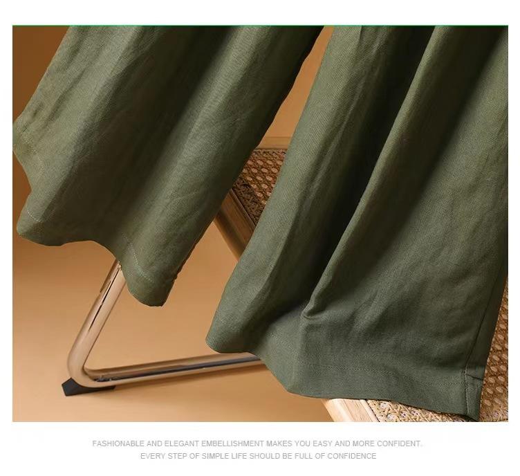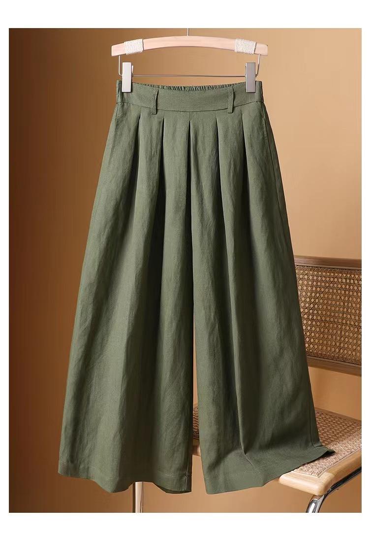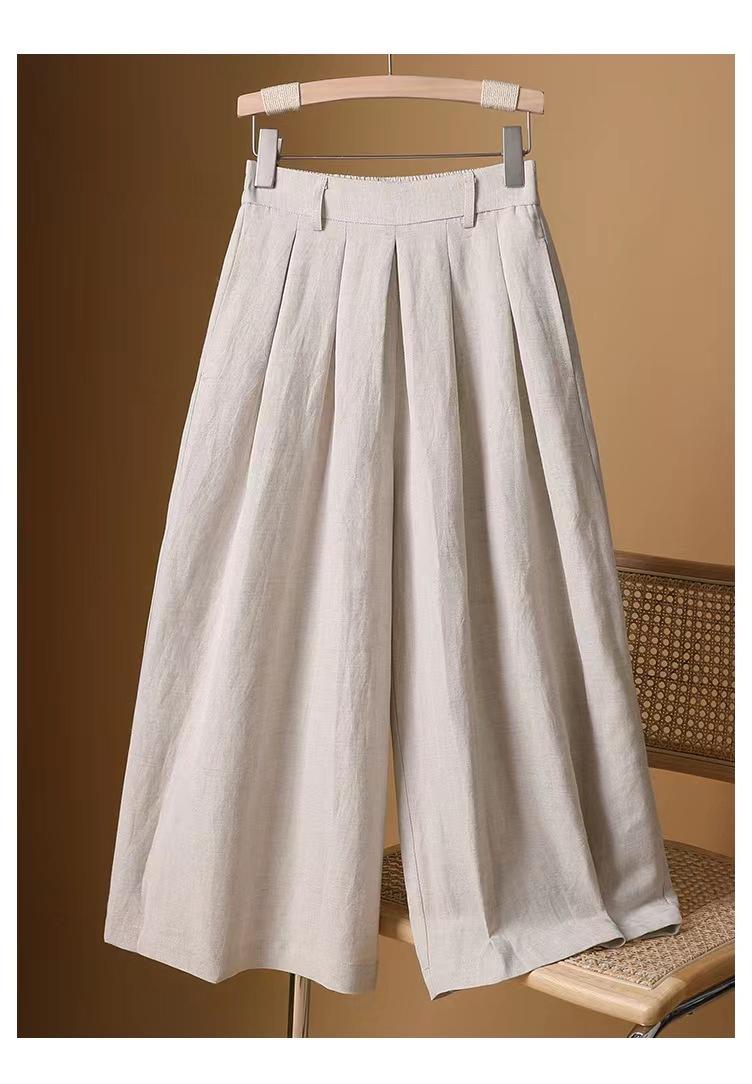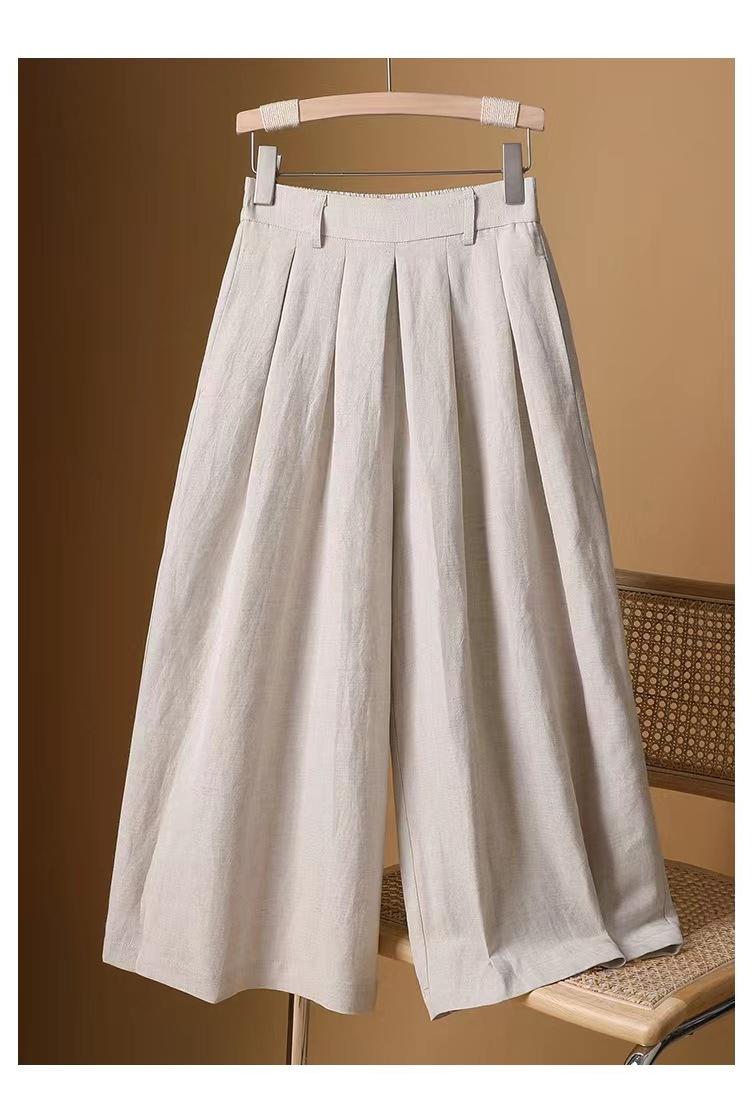 Pantalones culotte anchos de algodón y lino para mujer, con colgante adelgazante, cintura alta, holgados e informales, para verano, 2023