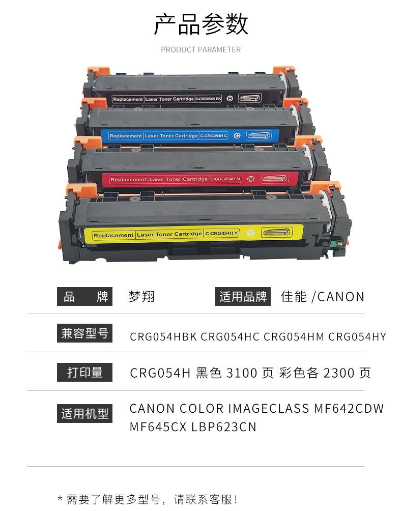 Modelo de cartucho de tóner aplicable: Cartucho de tóner para impresora láser color CMY CRG054 BK