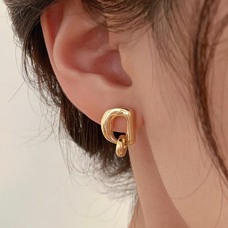 Compra Pendientes geométricos con letras huecas para mujer, sencillos, modernos, con personalidad, elegantes, de plata S925, con pasador, pendientes de nicho a la moda. al por mayor en Joom.pro