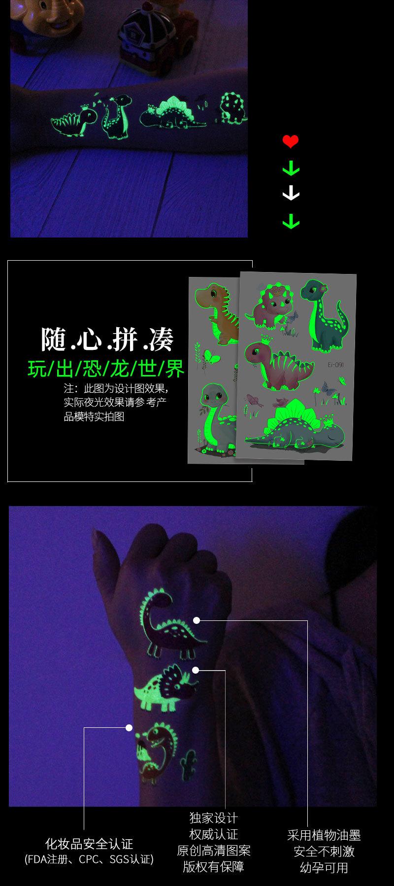 Características: Resistente al agua y al sudor, calcomanía de tatuaje luminosa, ¡buena transpirabilidad! ¡El patrón no es reflectante!