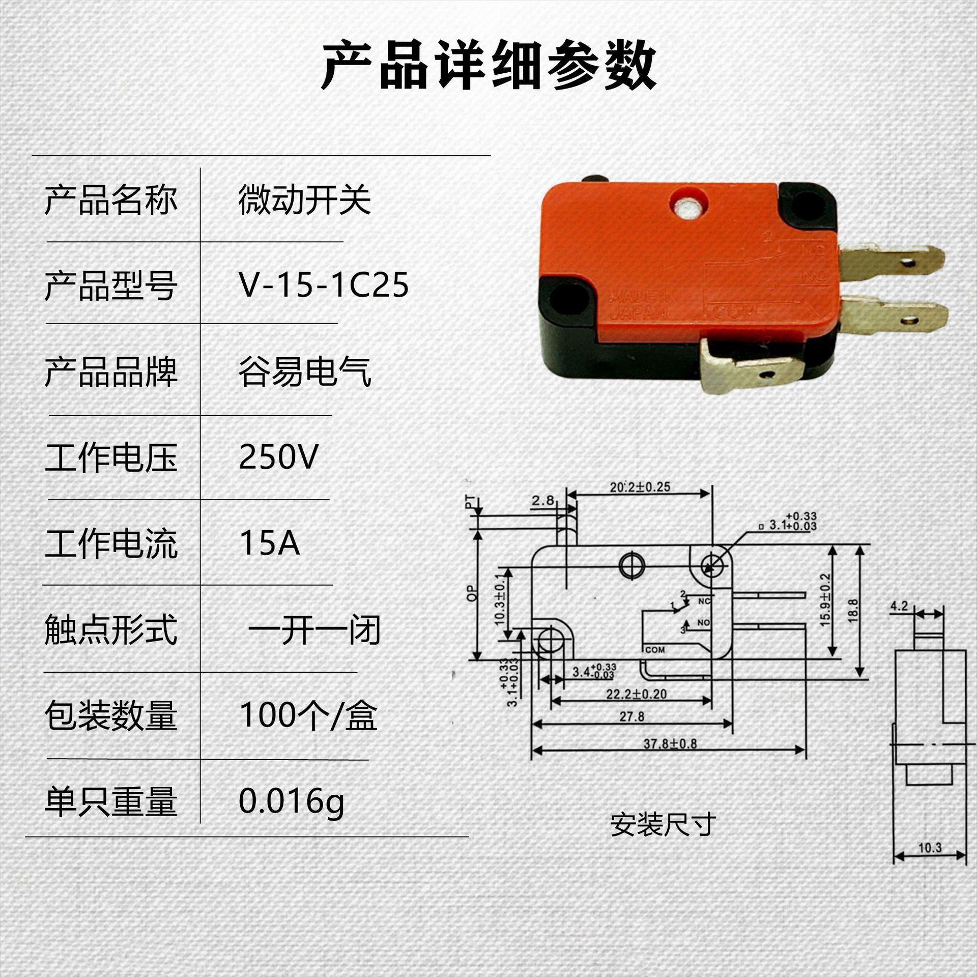 Interruptor de Viaje V-15-1C25 Microinterruptor Botón Límite Inching Auto-Restablecimiento Pequeño Microinterruptor Impermeable