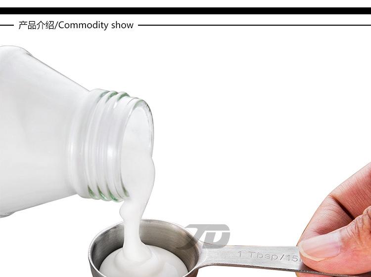 La superficie del producto está claramente grabada con escalas de uso común para hornear, con un total de 6 especificaciones de medición, TSP y ML.