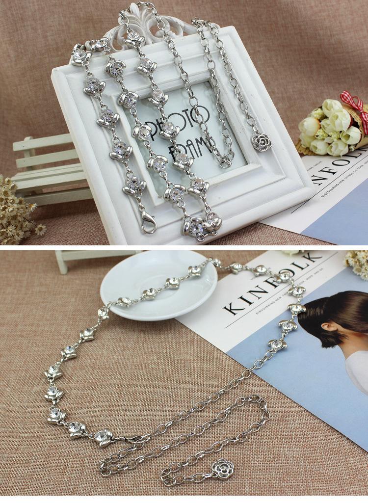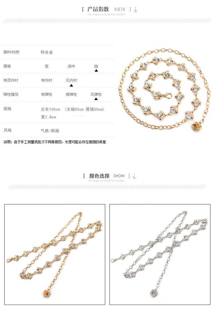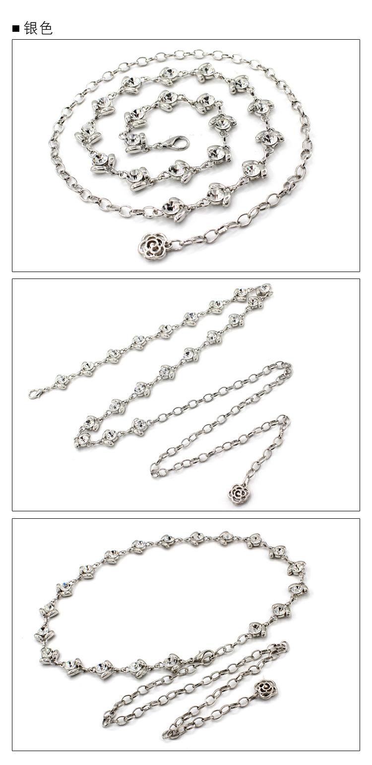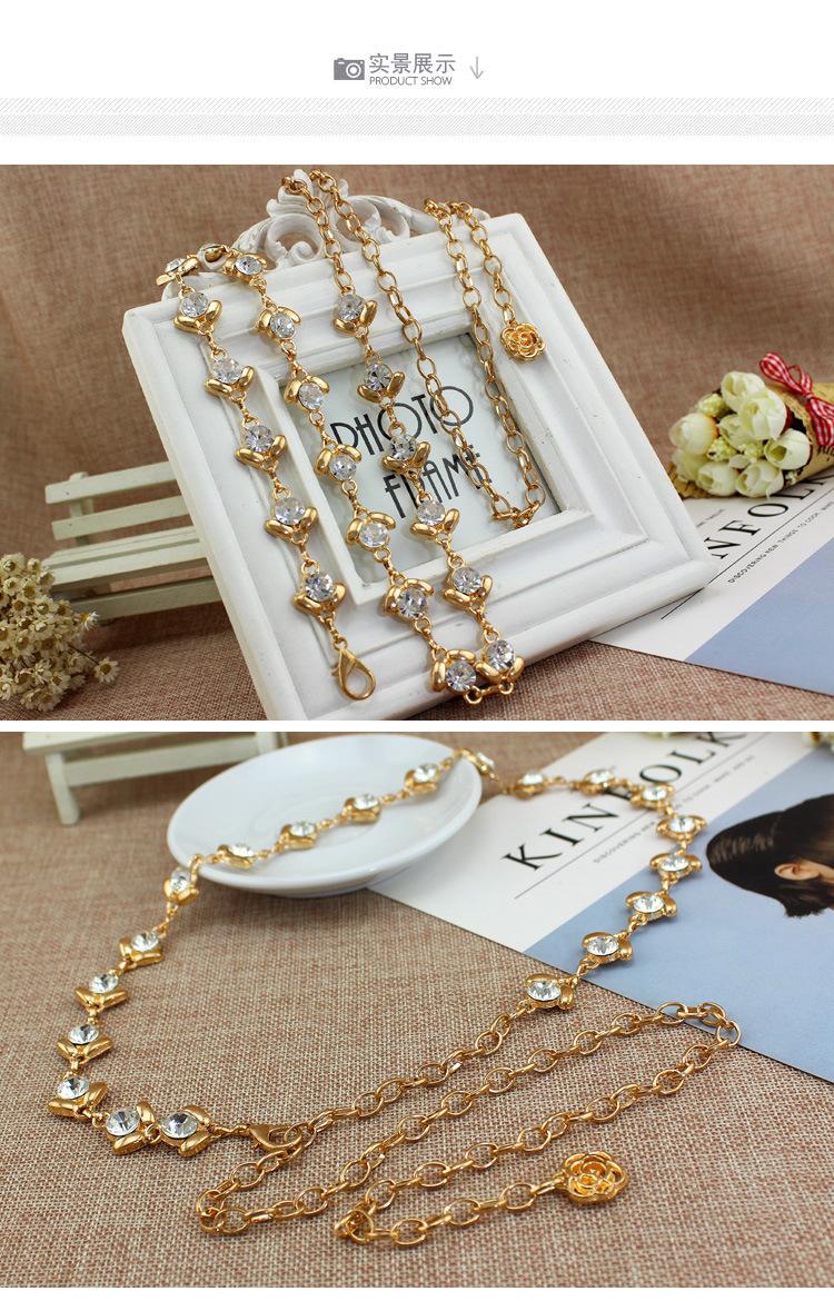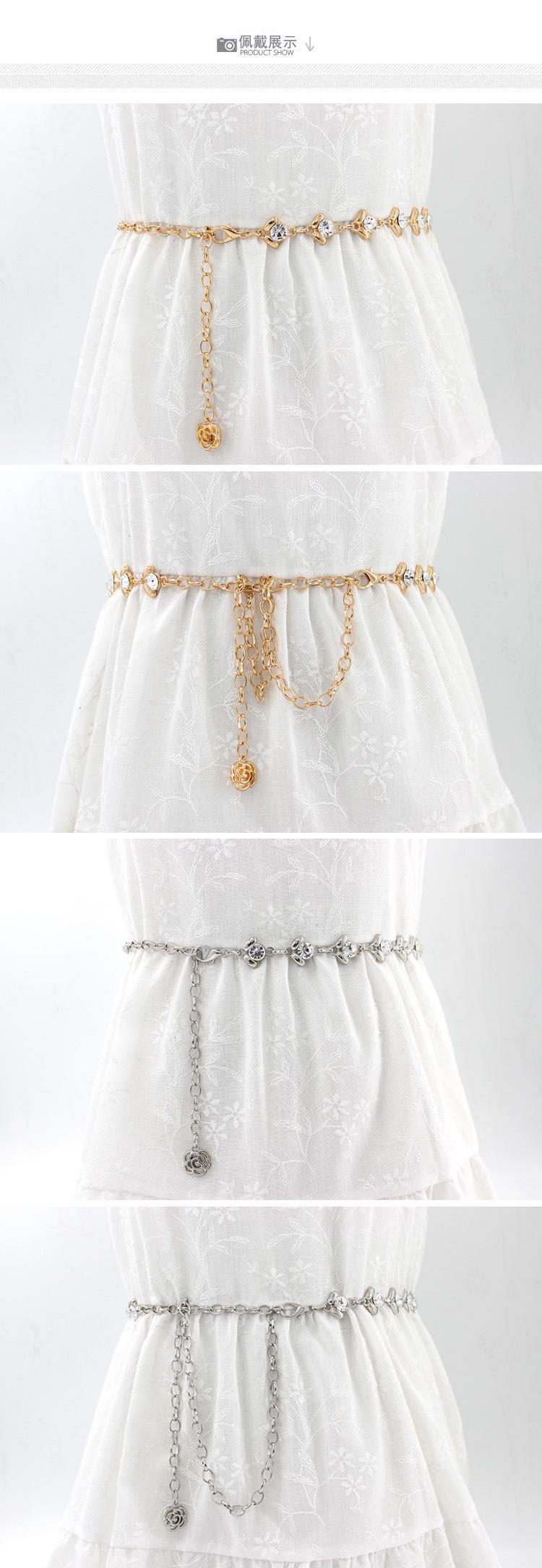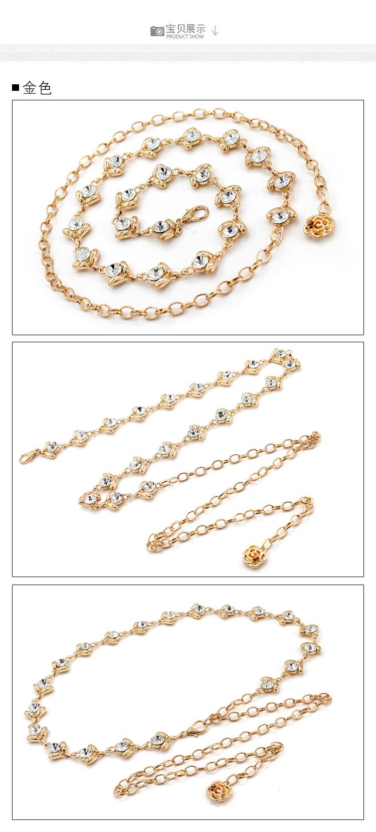[Nombre]: Cinturón delgado para mujer, cadena de cintura metálica dulce con incrustaciones de pedrería