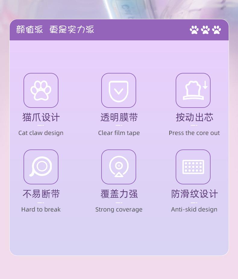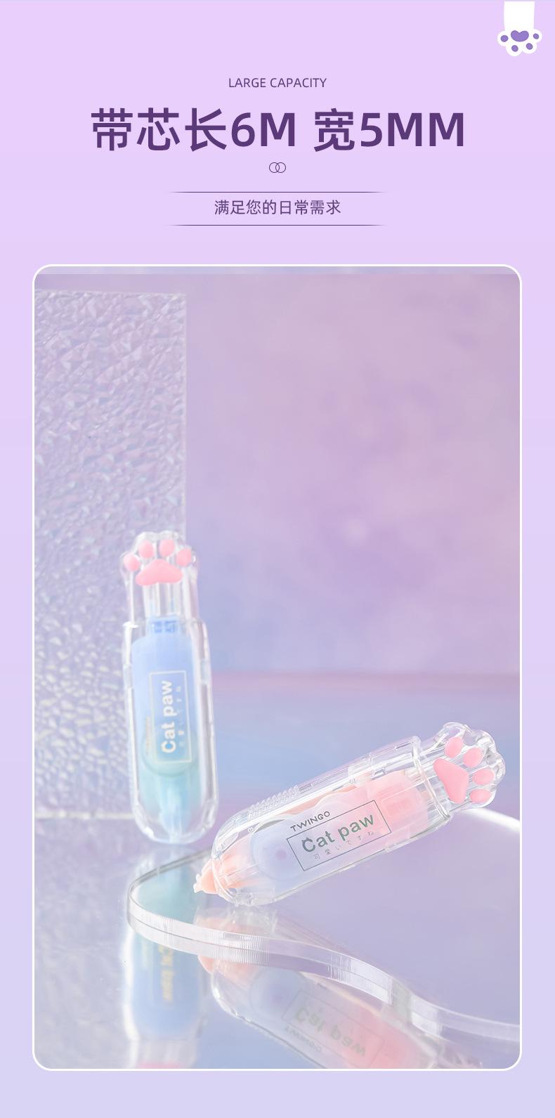 Cinta correctora Tiangao con degradado de garra de gato, cinta correctora creativa y linda de película PET transparente para estudiantes, cinta correctora al por mayor