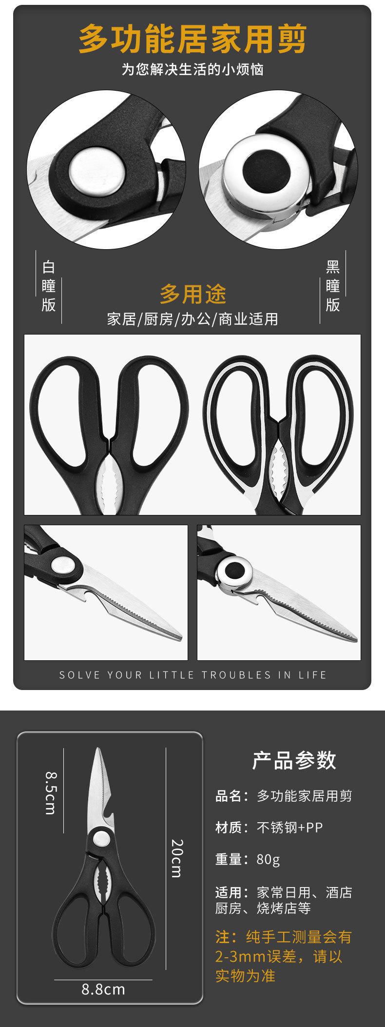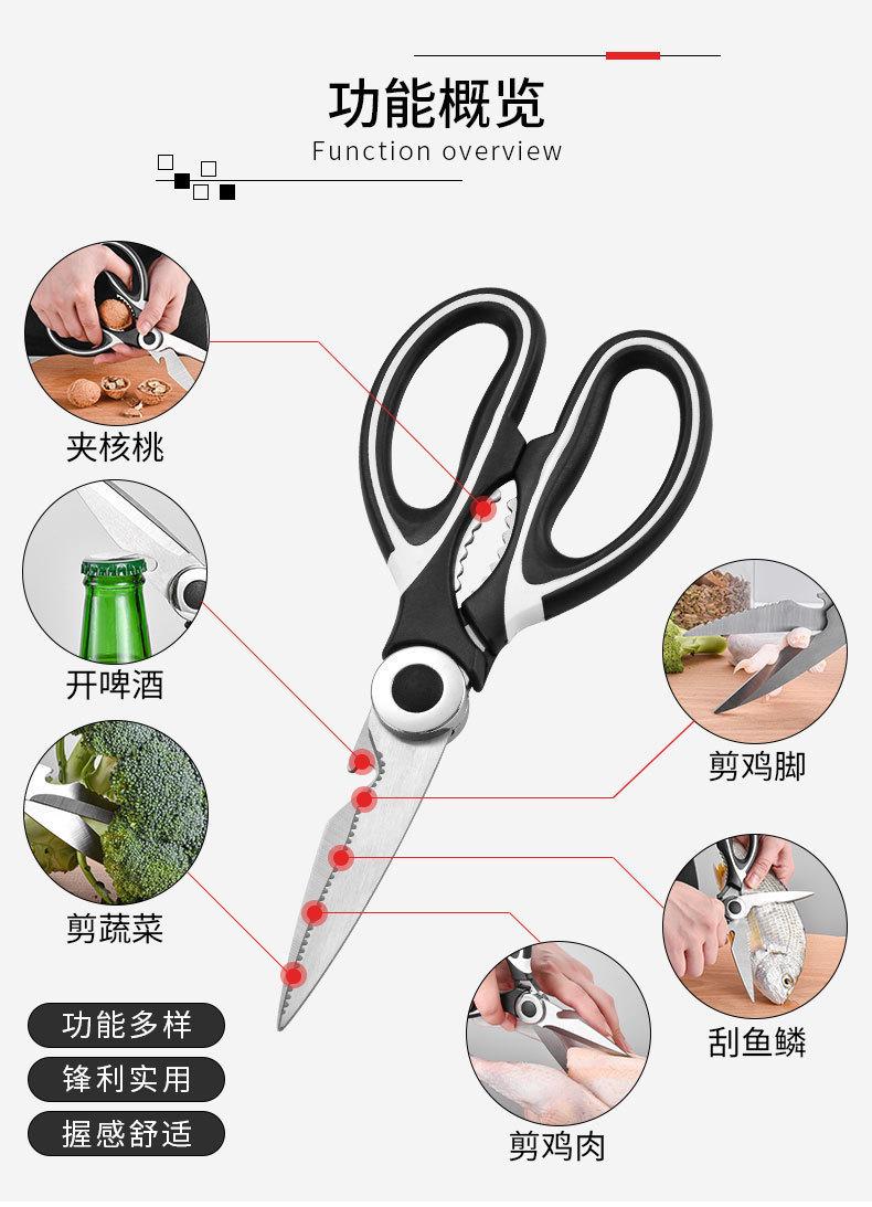 Tijeras para Huesos de Pollo Multifuncionales de Cocina Blanco y Negro Tijeras Domésticas Especiales para Matar Pescado Barbacoa Extra Grandes de Acero Inoxidable Tijeras Panda
