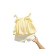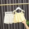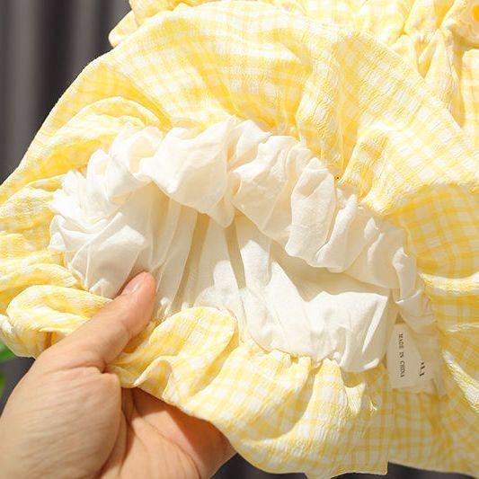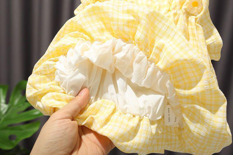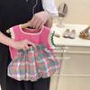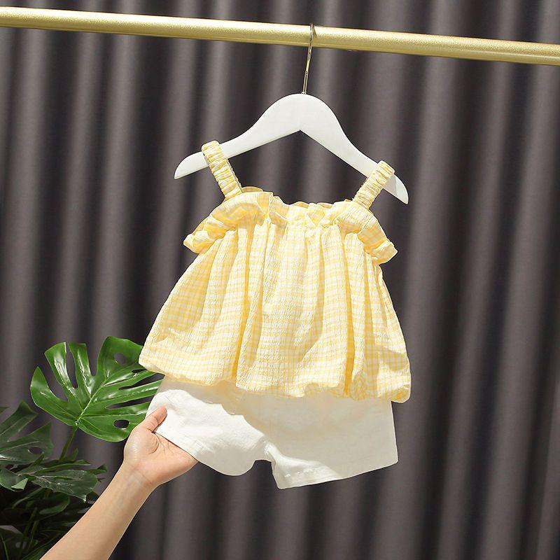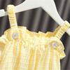 Traje de verano para niñas, estilo occidental, personalizado, de marca coreana, con estampado de cuadros y flores, camisola corta.