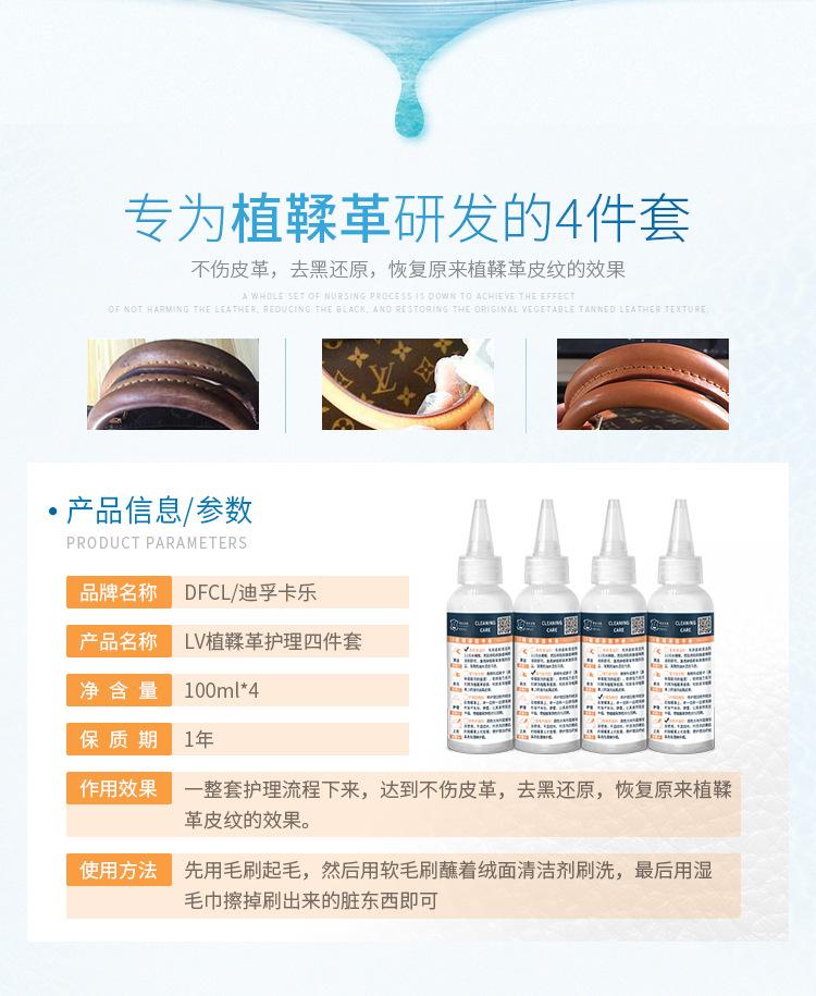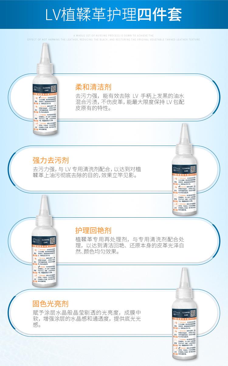 Set de limpieza y cuidado de cuero curtido vegetal de cuatro piezas zapatos y bolsos de lujo LV a juego cuero descontaminación negro restauración mantenimiento pulido agente de limpieza