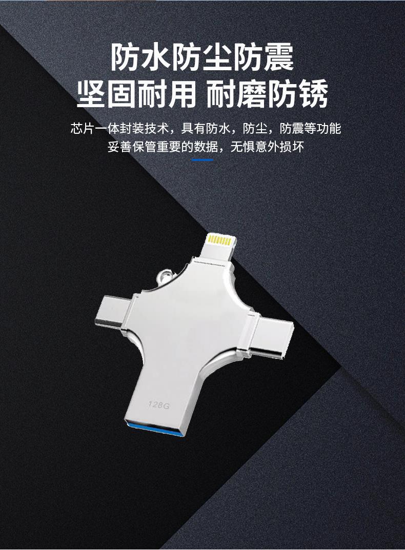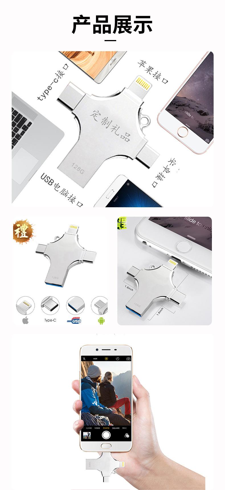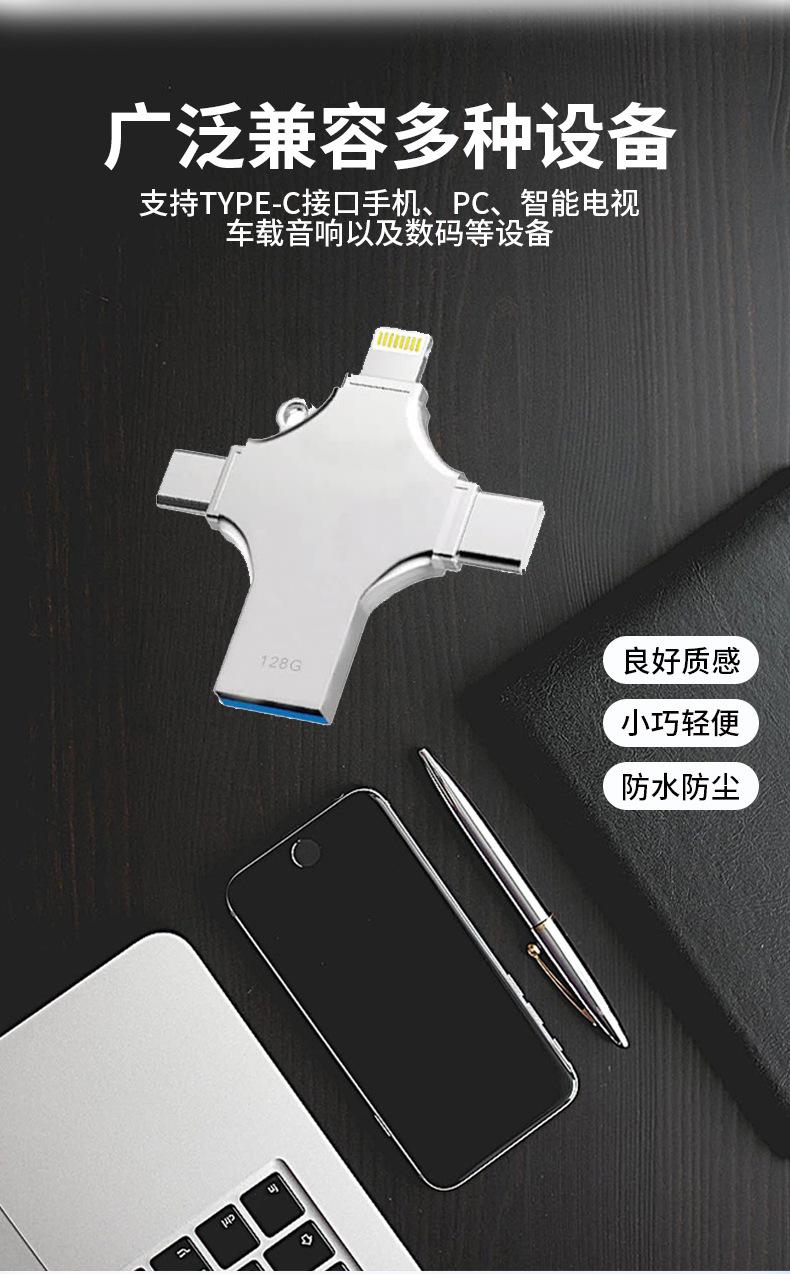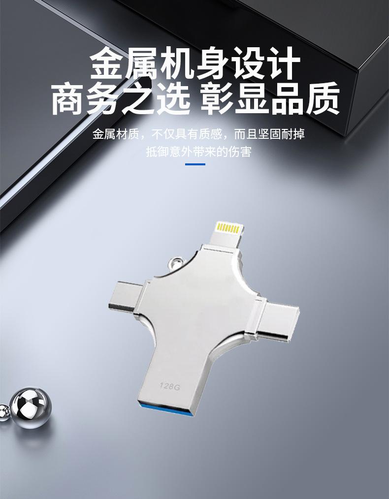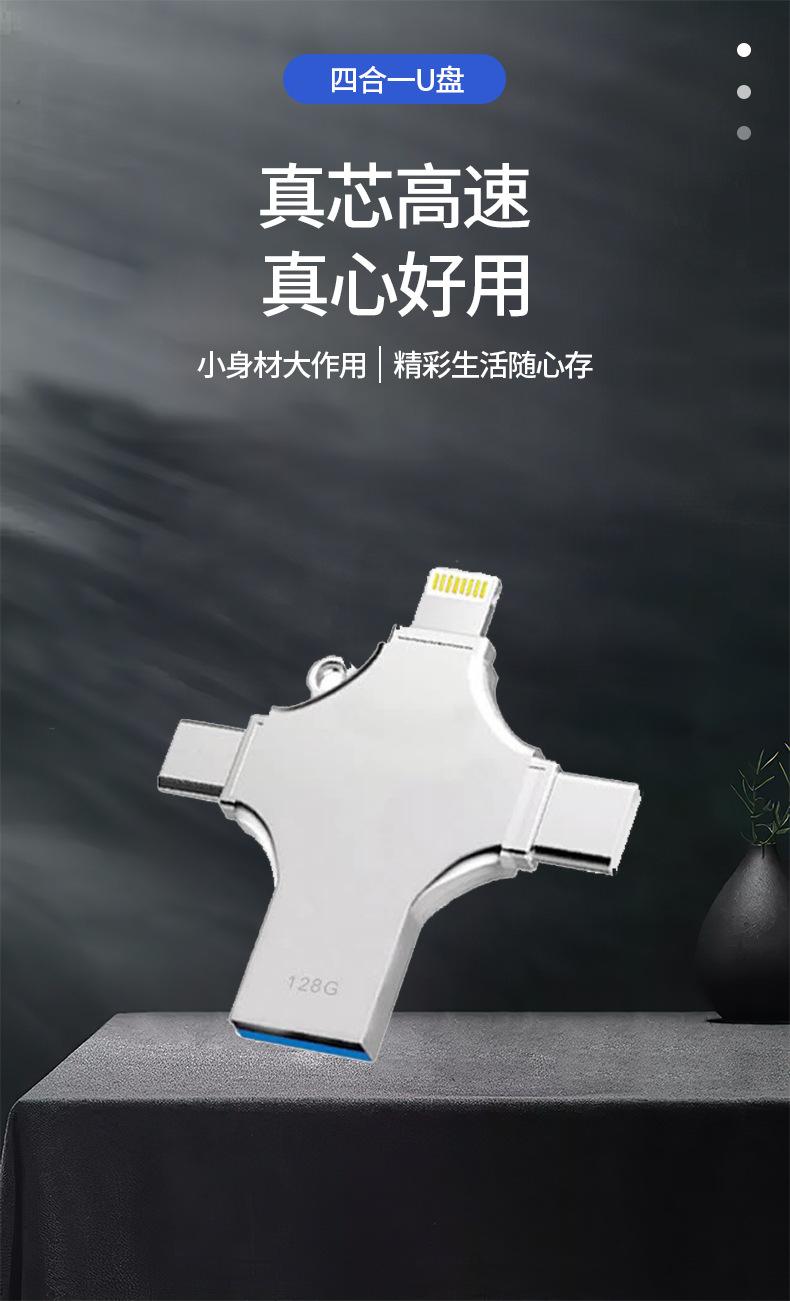 Unidad flash USB cuatro en uno para teléfono móvil, computadora, teléfono móvil Android, unidad flash USB de cruz de metal de 64 g, adecuada para unidad flash USB de alta velocidad de Apple