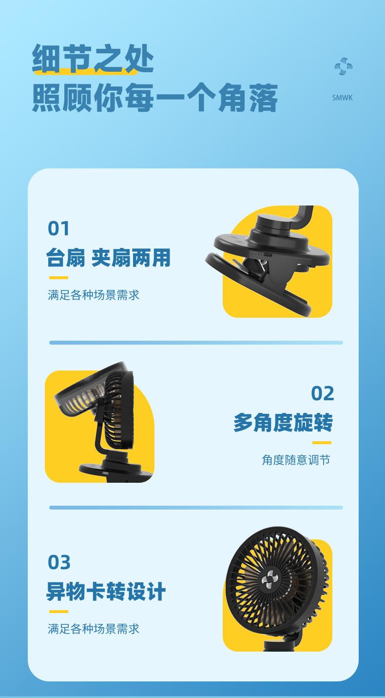 Compra Nuevo Mini Ventilador de Escritorio con Cabezal Oscilante Automático Recargable para Exterior Viento Fuerte Estilo Camping Ventilador con Clip Ventilador de Circulación USB al por mayor en Joom.pro