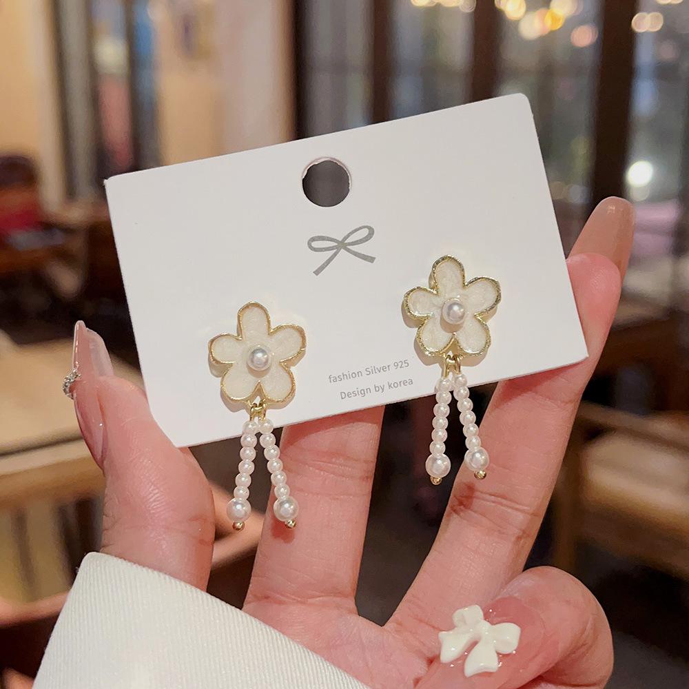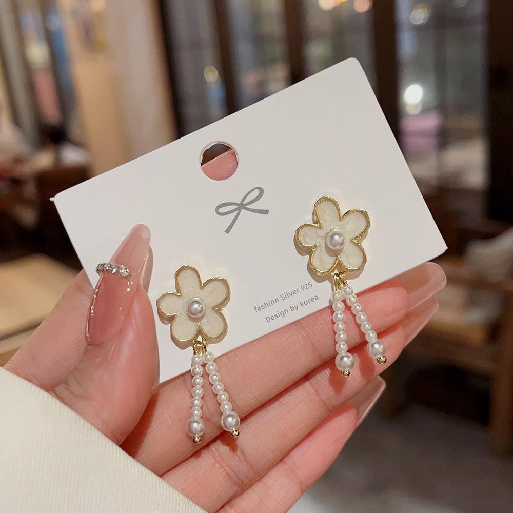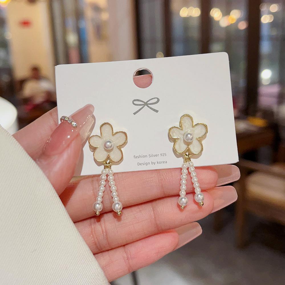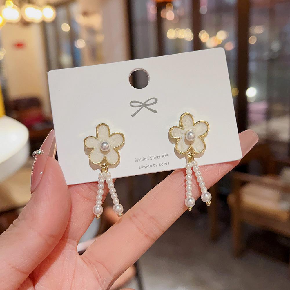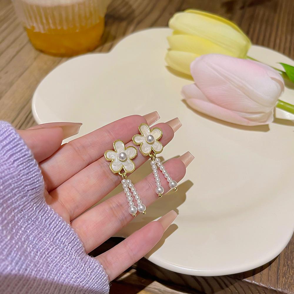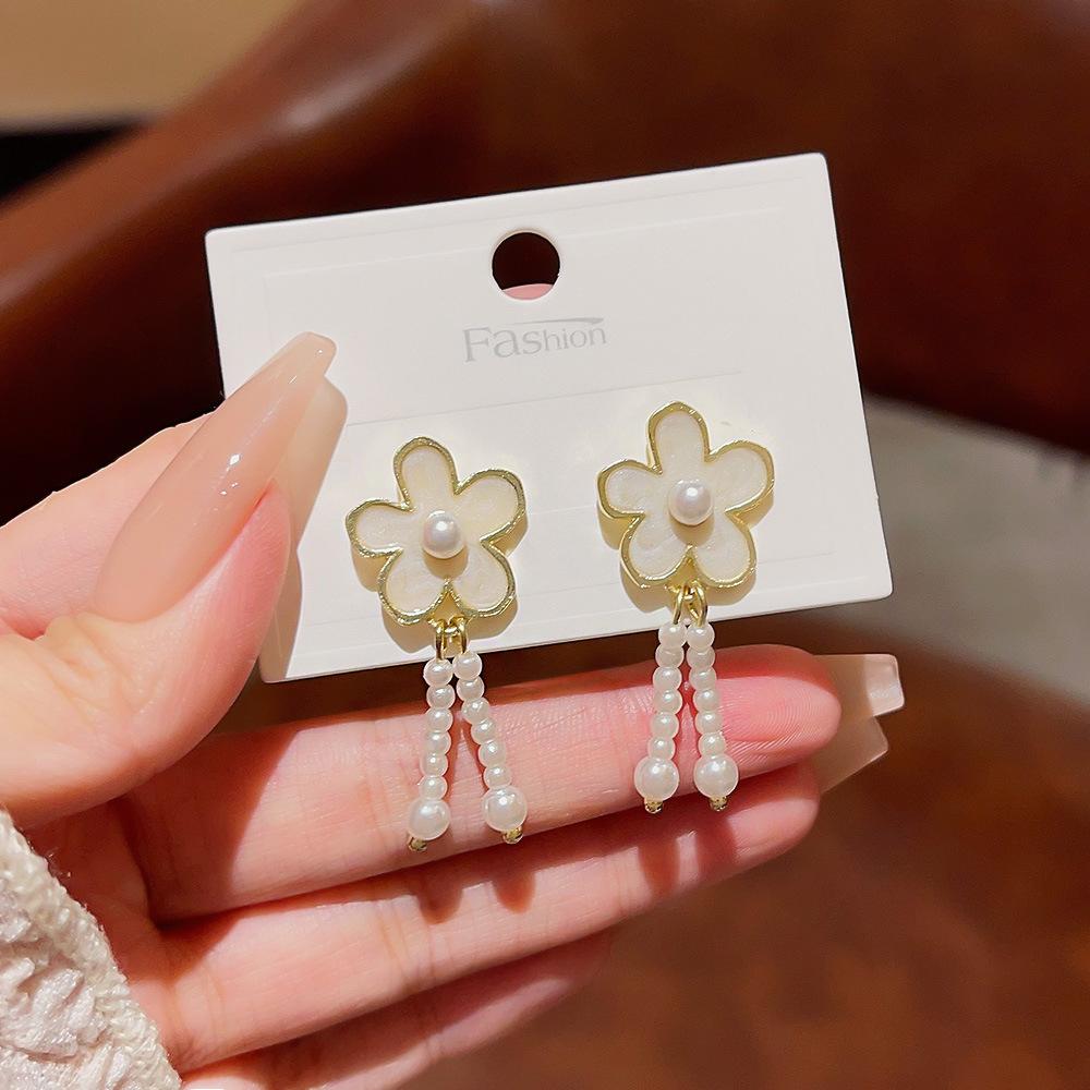 Pendientes de perlas barrocas de diseño personalizado de nicho, ligeros y lujosos, con flores de alta gama para mujer.
