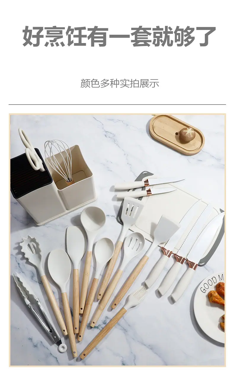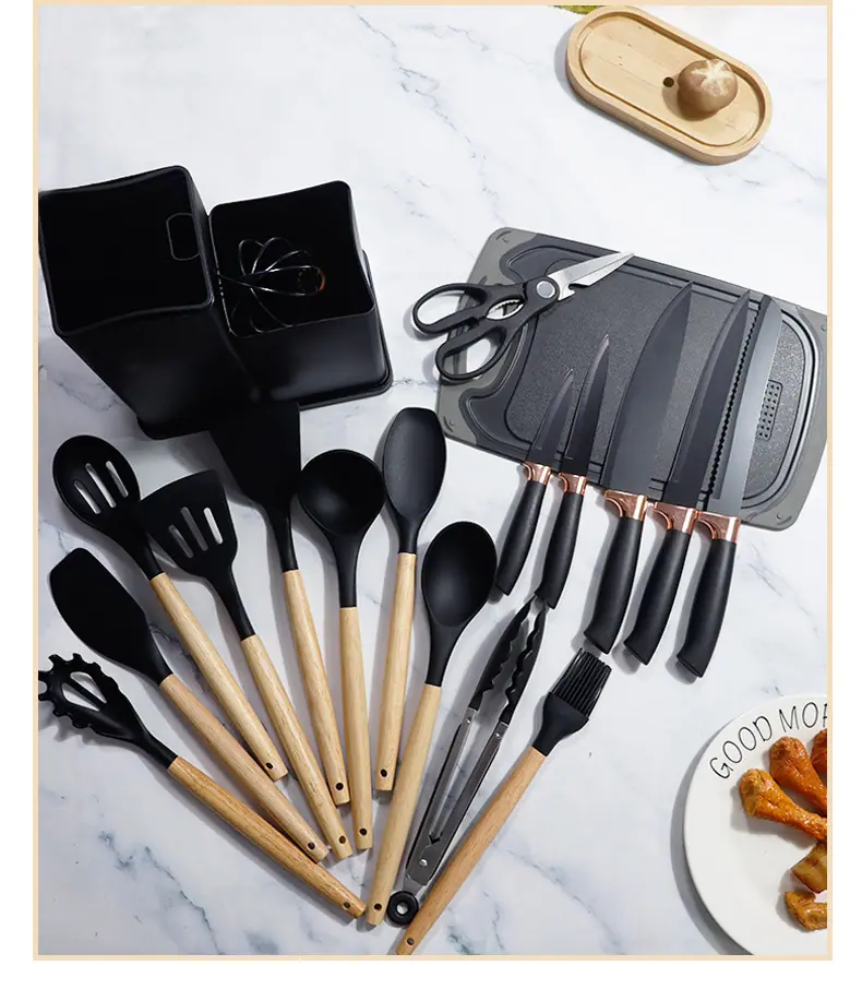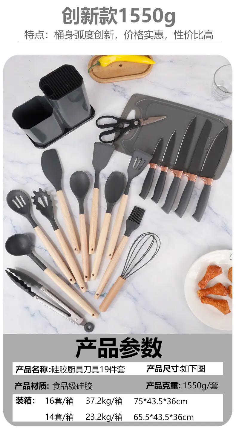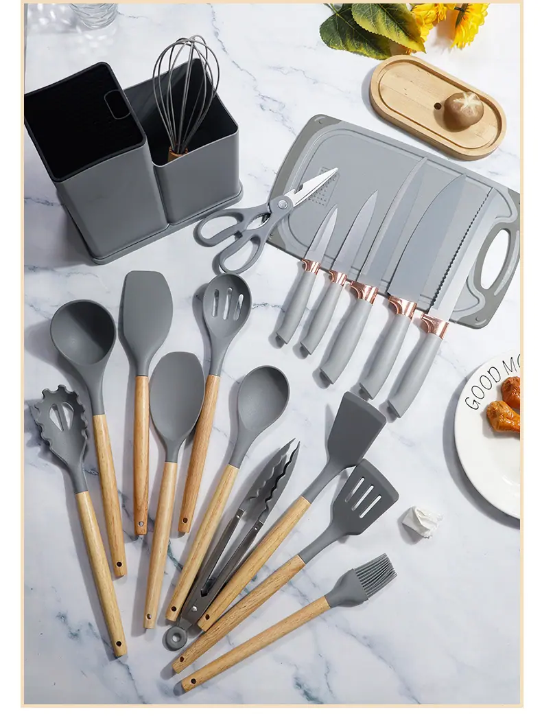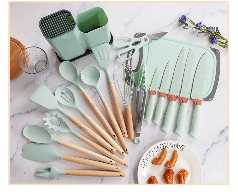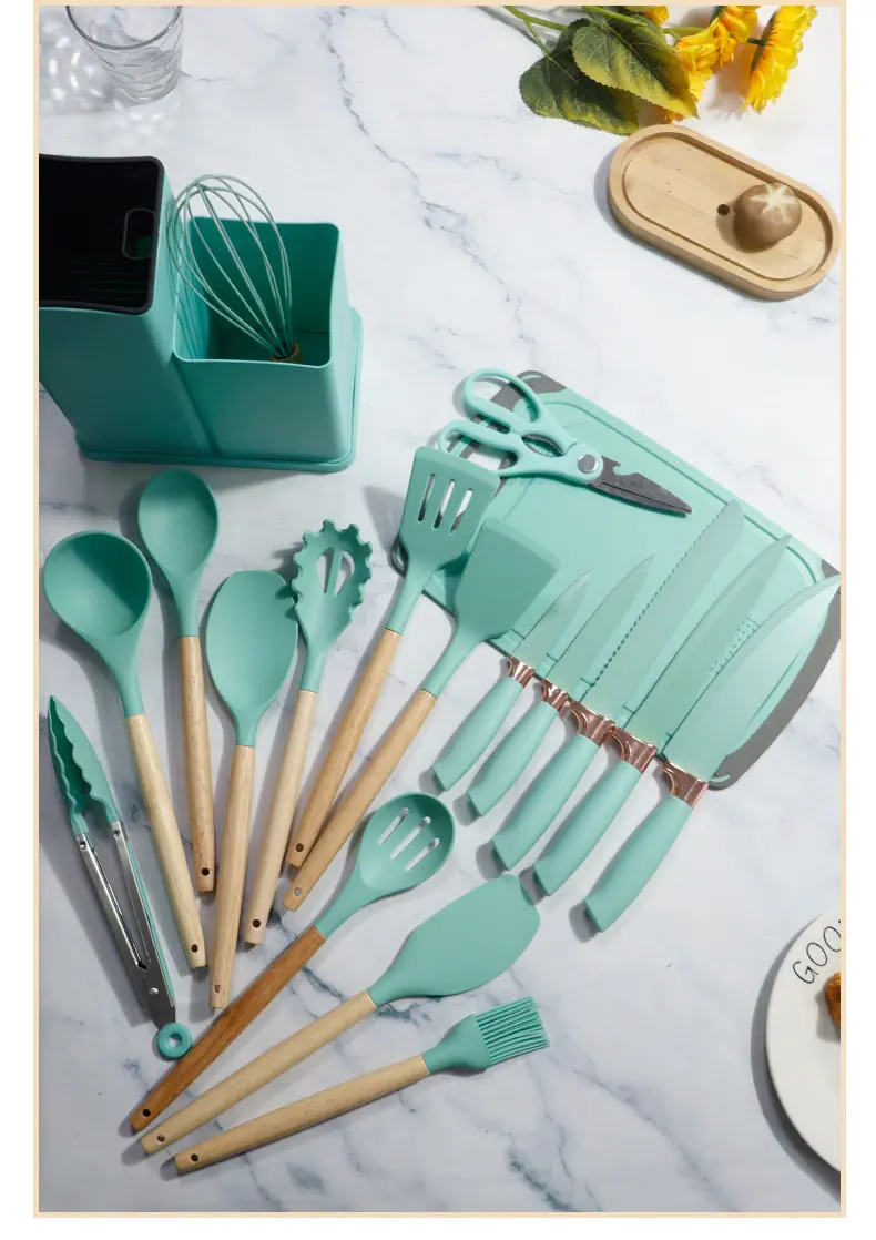Espátula de silicona transfronteriza, cuchara sopera, juego de 19 piezas, espátula de silicona antiadherente, utensilios de cocina de silicona de grado alimenticio, cortador, venta al por mayor