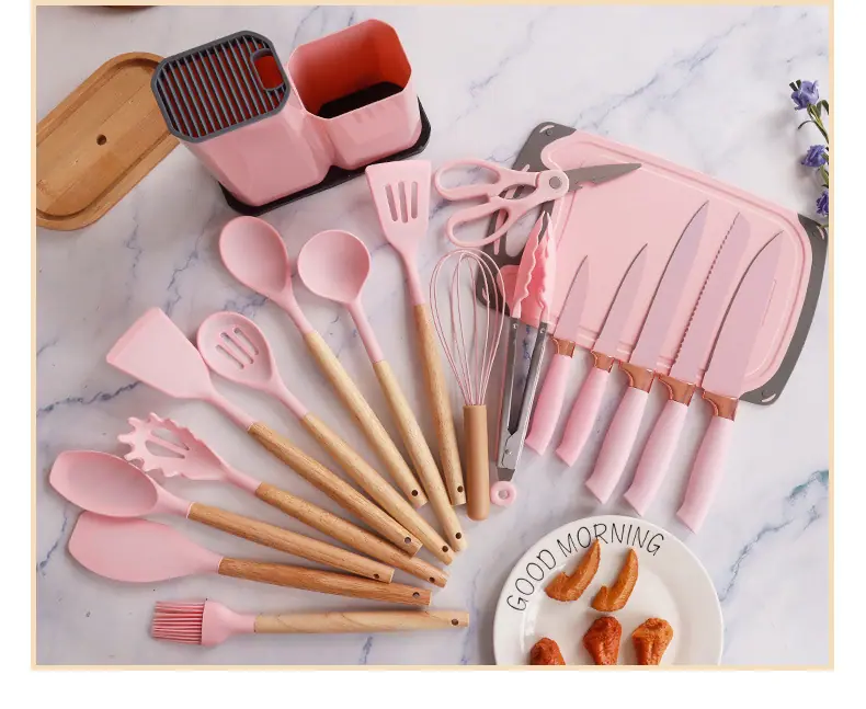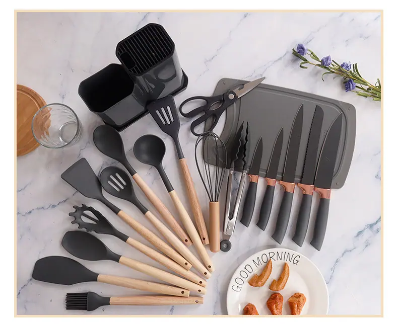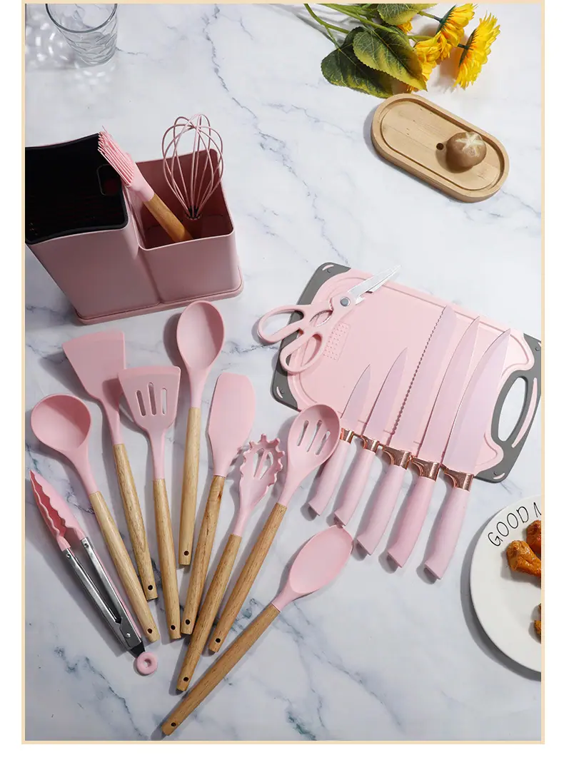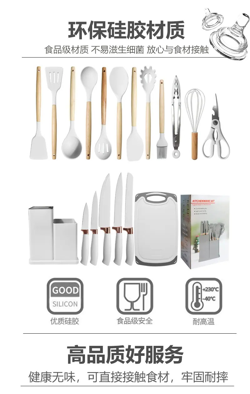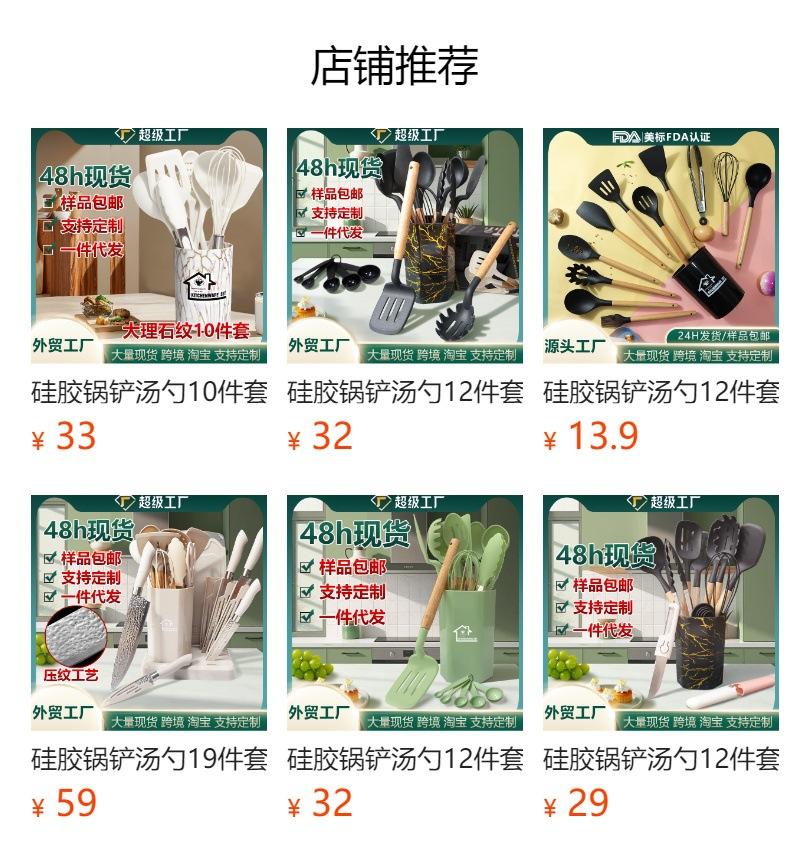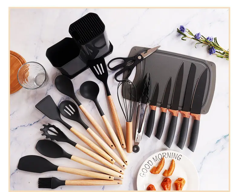 Espátula de silicona transfronteriza, cuchara sopera, juego de 19 piezas, espátula de silicona antiadherente, utensilios de cocina de silicona de grado alimenticio, cortador, venta al por mayor