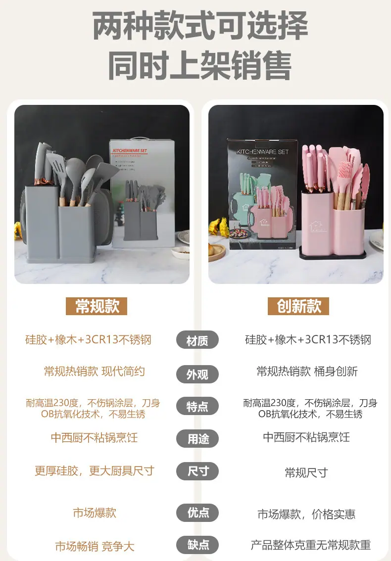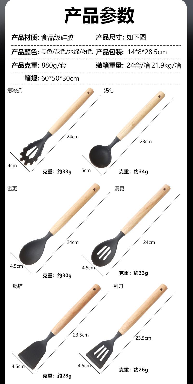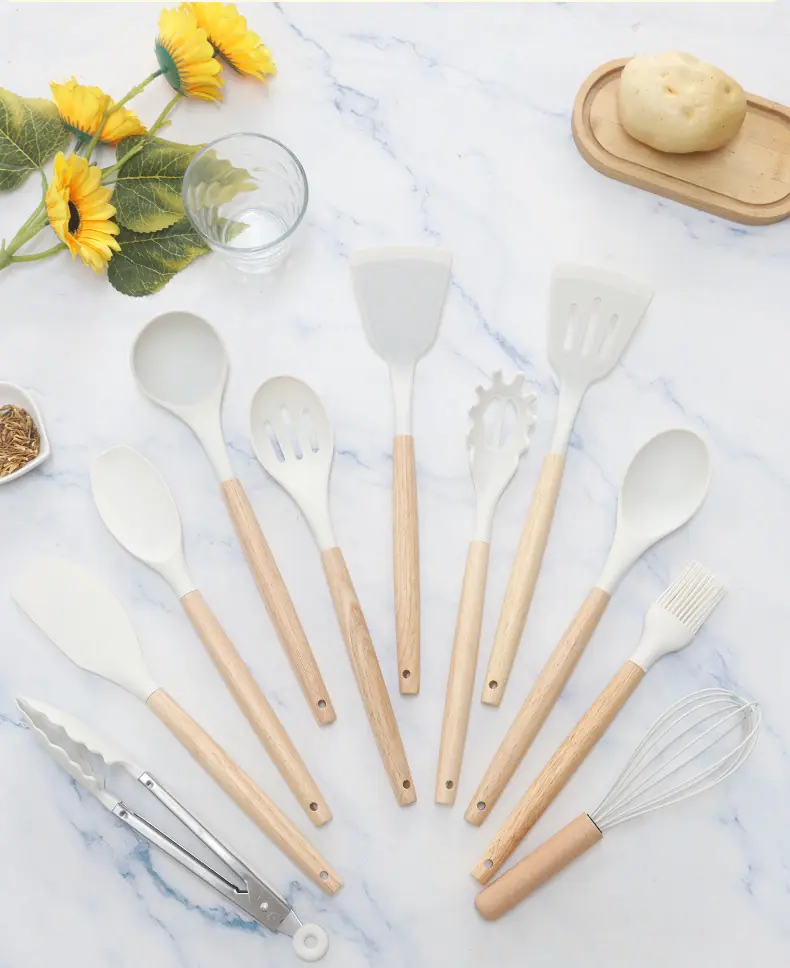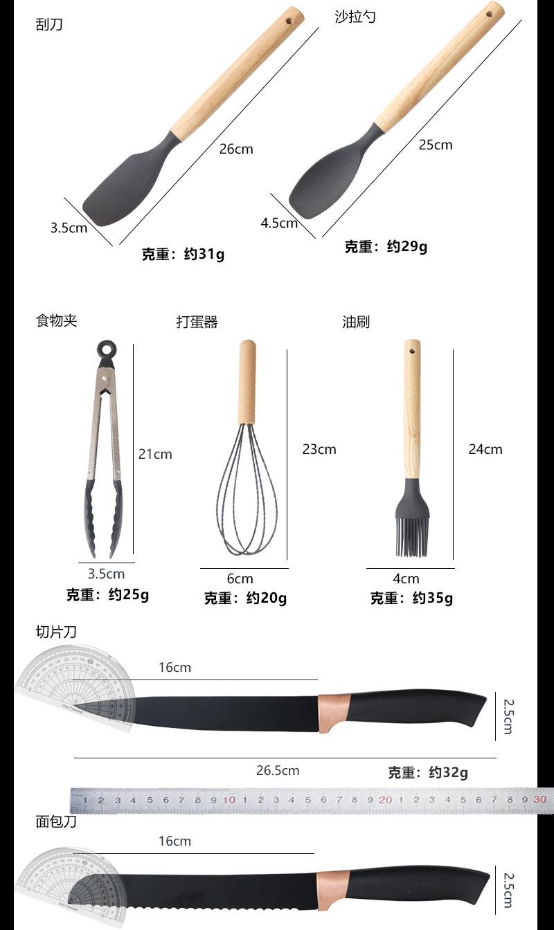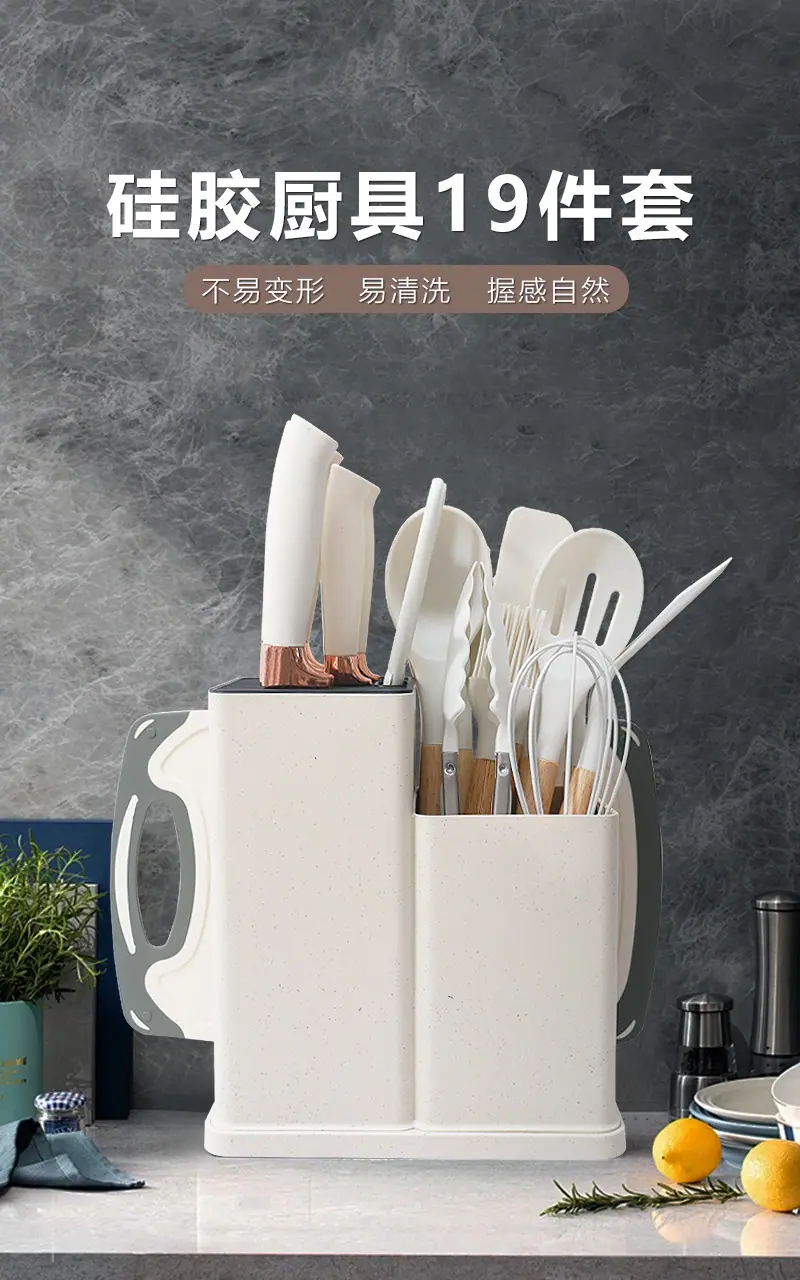 Espátula de silicona transfronteriza, cuchara sopera, juego de 19 piezas, espátula de silicona antiadherente, utensilios de cocina de silicona de grado alimenticio, cortador, venta al por mayor