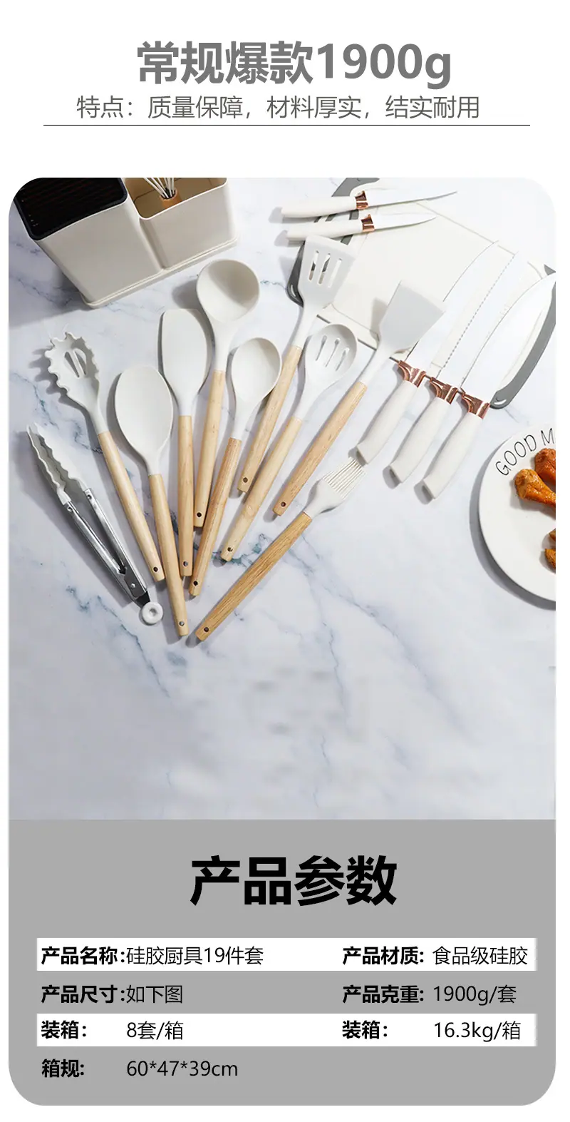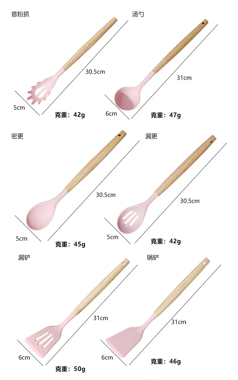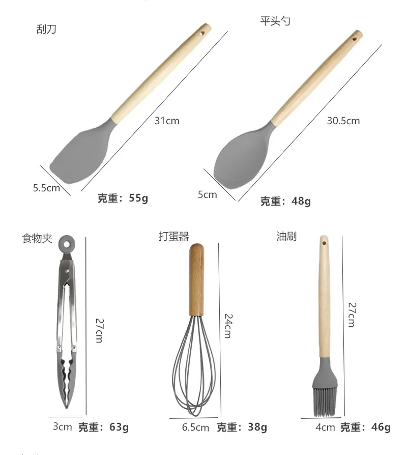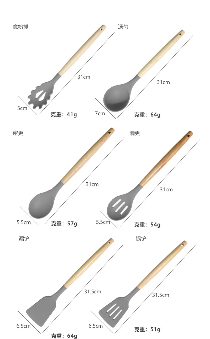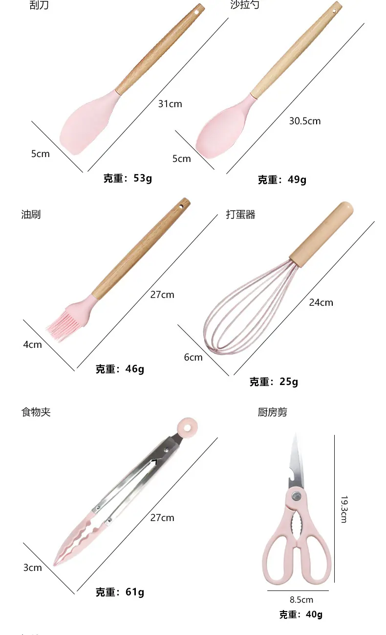 Espátula de silicona transfronteriza, cuchara sopera, juego de 19 piezas, espátula de silicona antiadherente, utensilios de cocina de silicona de grado alimenticio, cortador, venta al por mayor