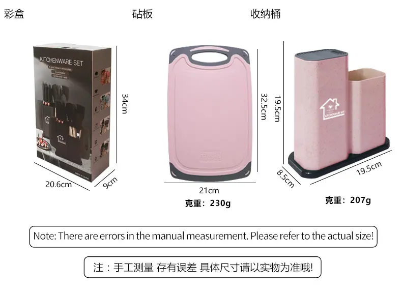 Special 19-piece set of kitchenware knives 850g (with double storage barrels)