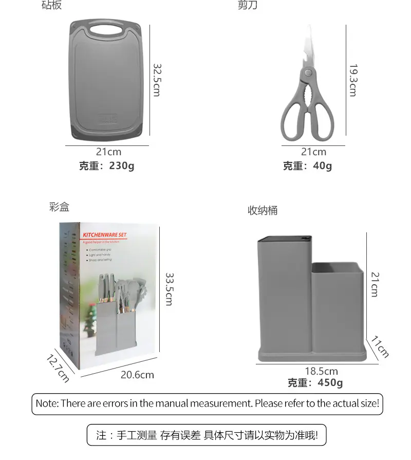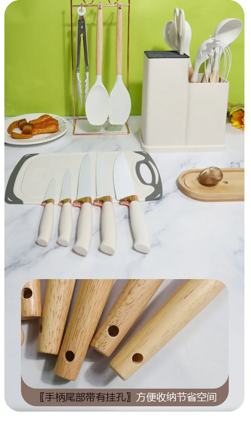 Upgrade kitchen utensils and knives 19-piece set 1850g (with double storage barrels)