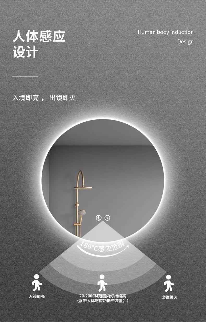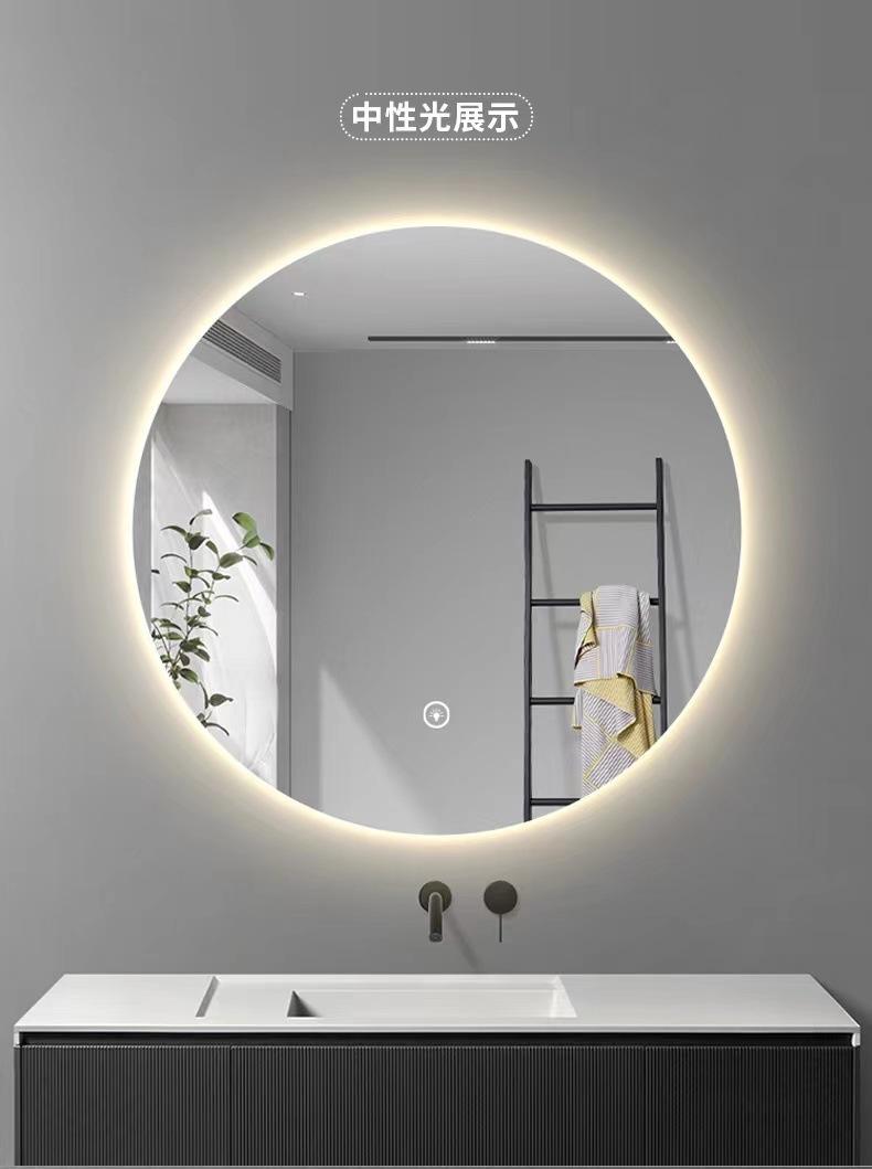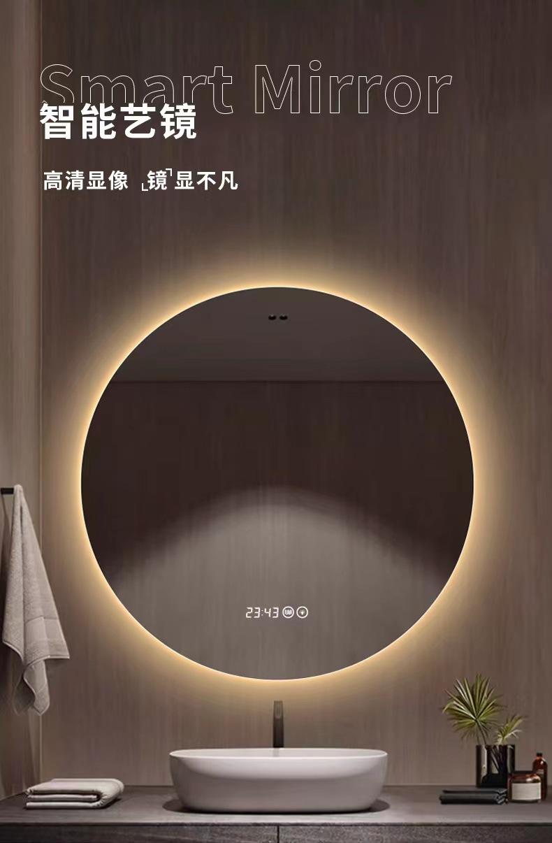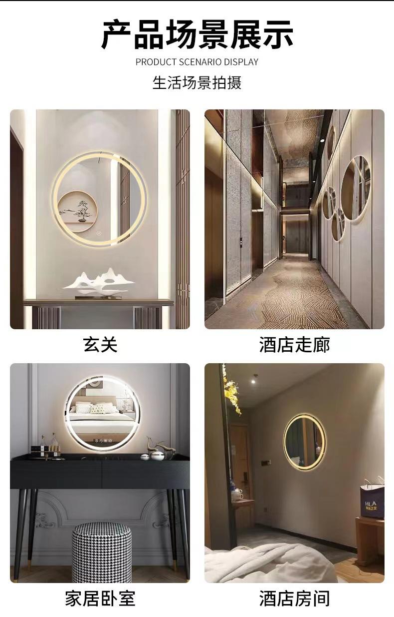 Compra Espejo inteligente redondo de hotel para baño con luz LED, pantalla táctil, inducción, antivaho, espejo luminoso, espejo de baño para comercio exterior al por mayor en Joom.pro