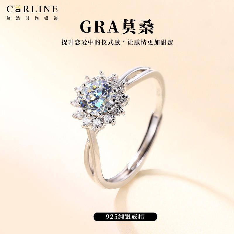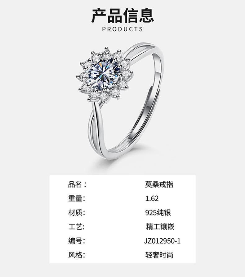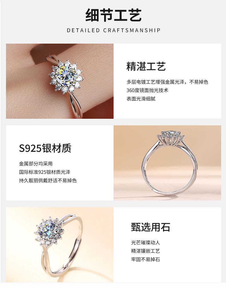 Venta directa de fábrica moissanita anillo ins Viento diseño nicho color D geométrico chapado flor Plata Esterlina 925 anillo