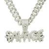 Collar cubano con colgante de letra de diamante completo y empalme creativo, estilo hip-hop europeo y americano, vestido de baile callejero de moda, collar largo para hombre