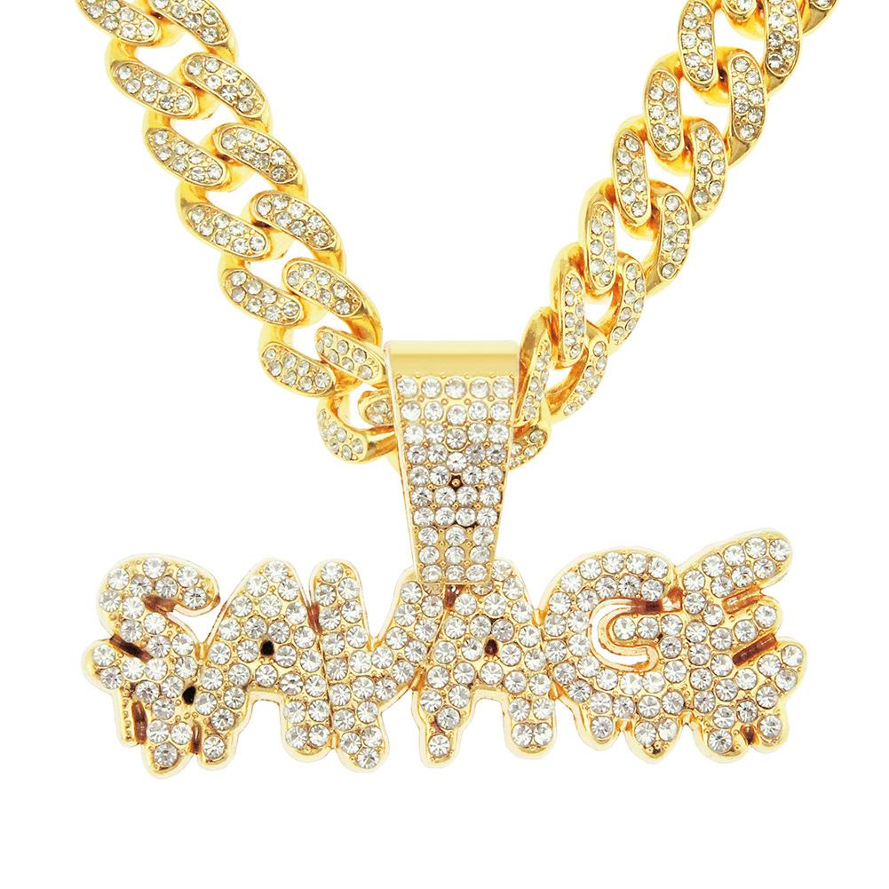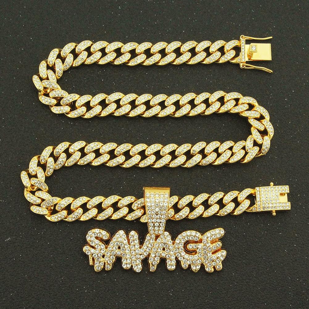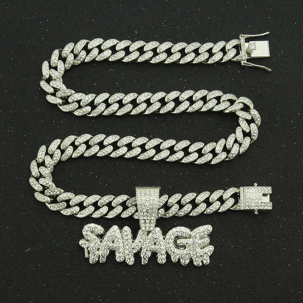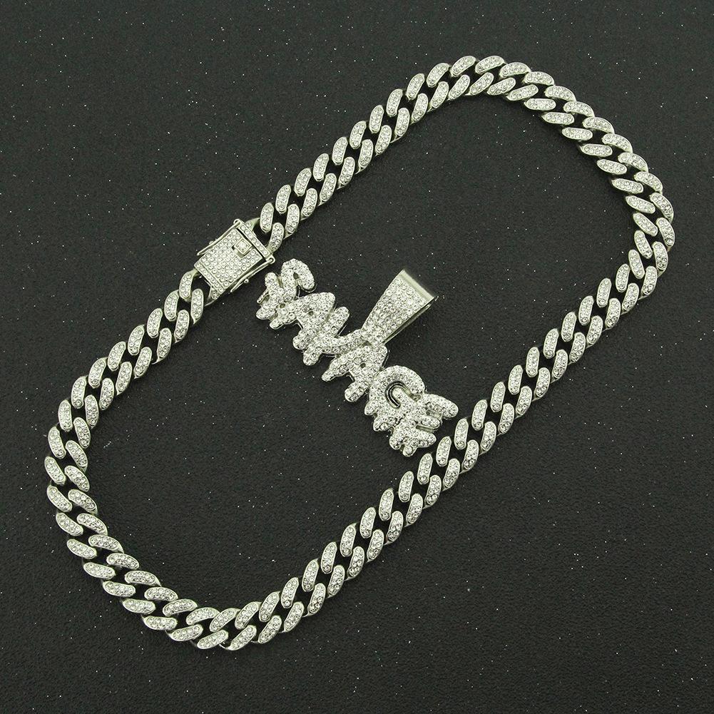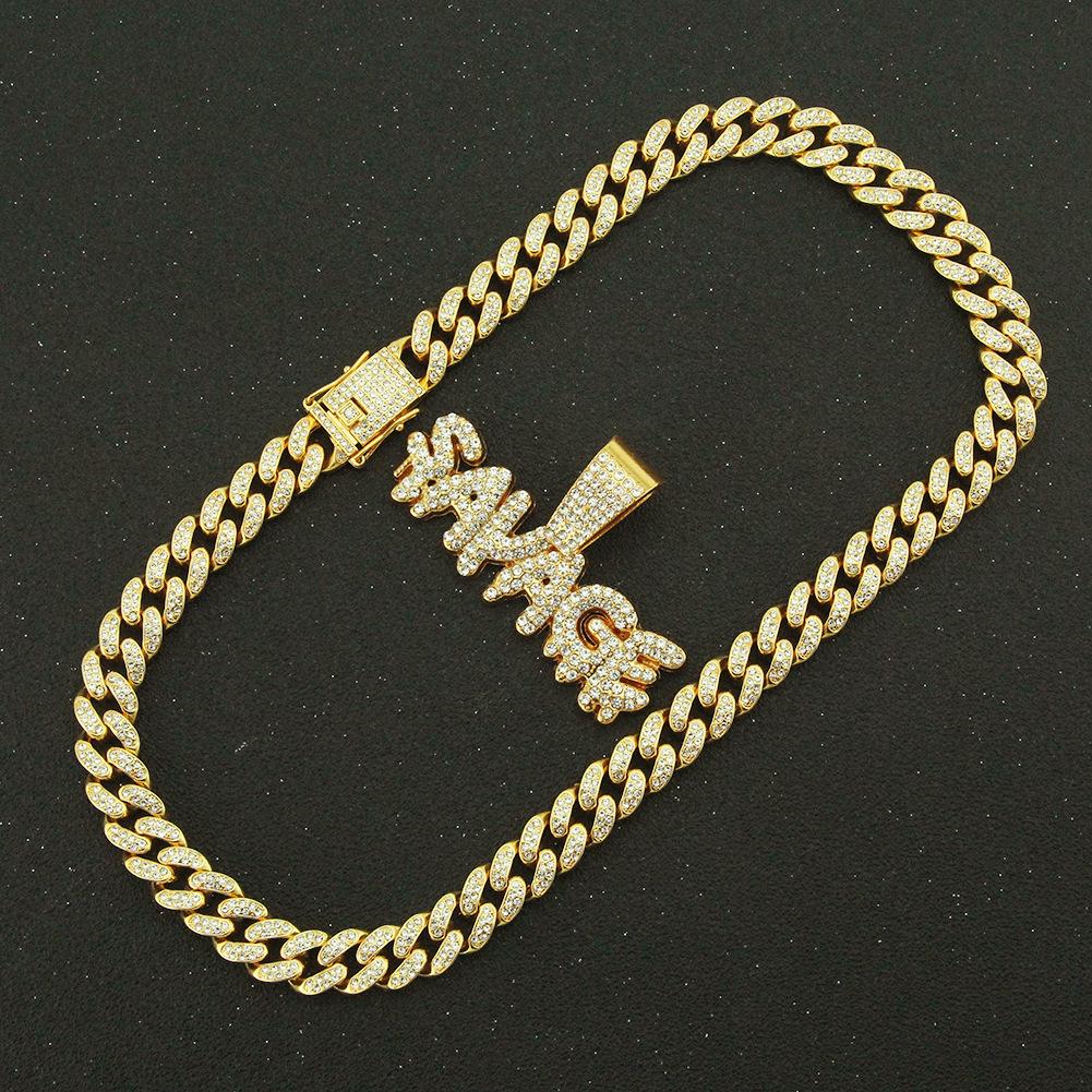 Collar dominante para hombre con colgante de letra de diamante completo, cadena cubana ancha, estilo hip hop, hip-hop, baile callejero europeo y americano