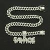 Colgante de cadena cubana con diamantes cuadrados y letras geniales, estilo hip-hop europeo y americano, colgante de aleación moderna con cadena de clavícula llena de diamantes