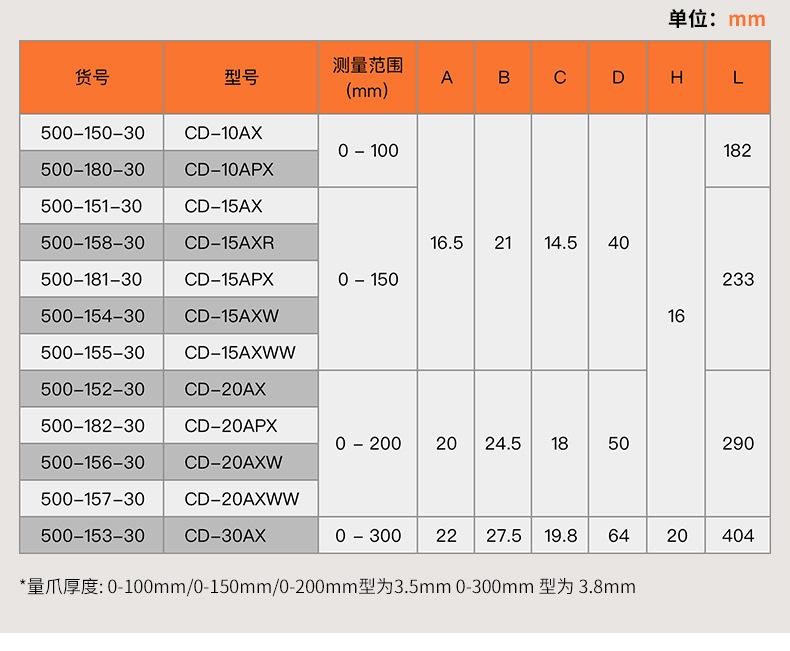 500-151-30(0-150MM), 500-152-30/0-200mm/±0.02mm/thin sheet, 500-153-30 (0-300mm/±0.03mm/thin rod/with data out...
