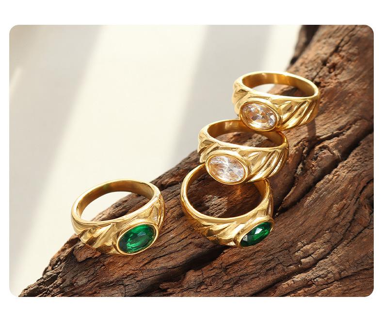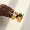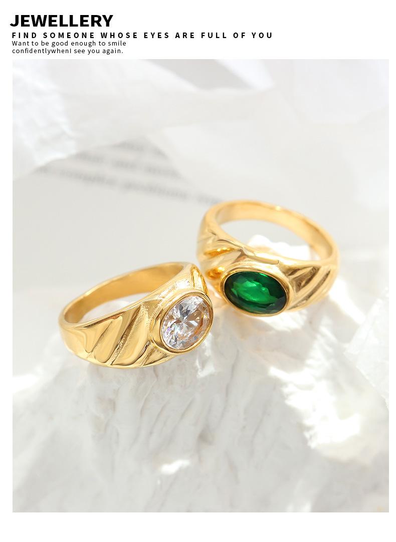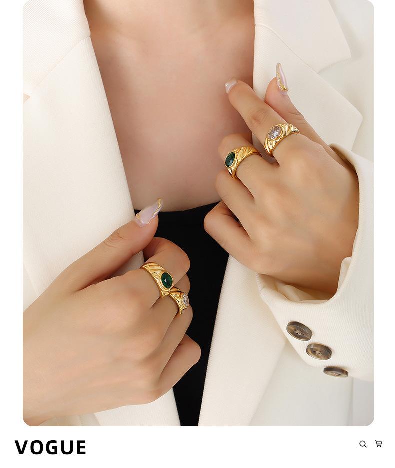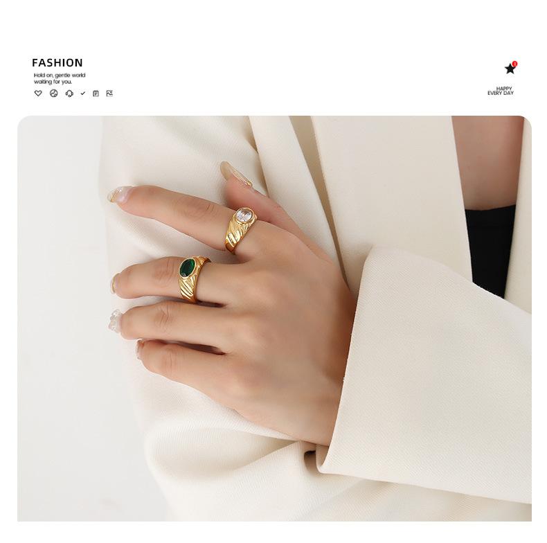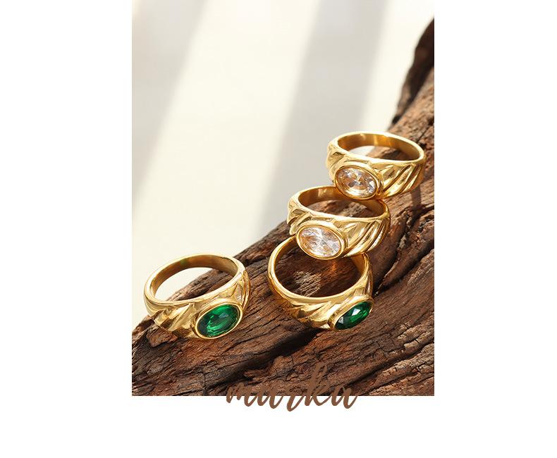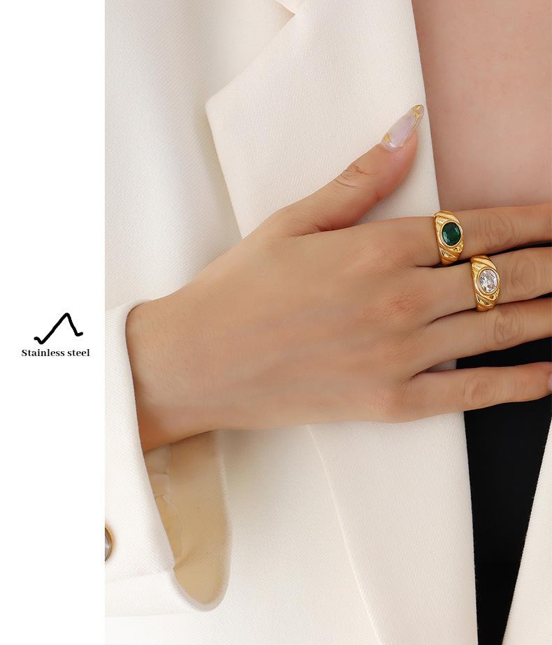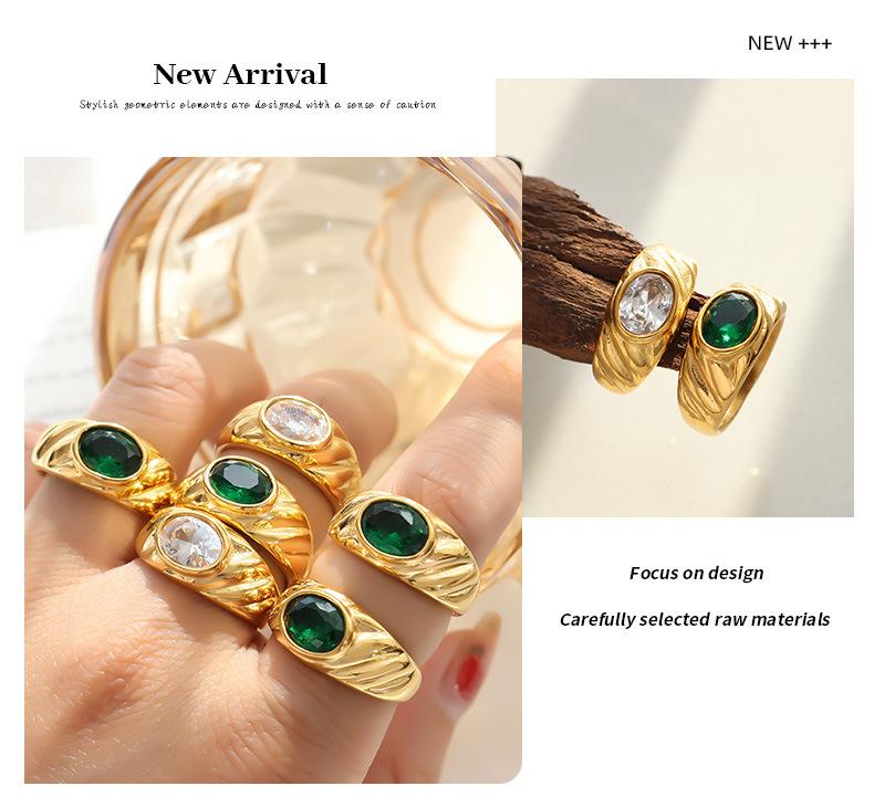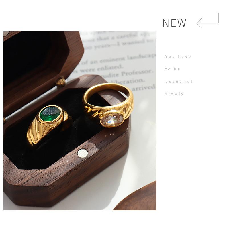 Anillo de Boda Europeo y Americano Estilo Corte Diseño Nicho Acero Titanio Chapado en Oro Anillo Blanco Verde Anillo de Circonita para Mujer