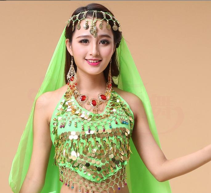 Ropa de actuación para danza del vientre, top de pimiento, ropa de baile, sujetador de actuación con lentejuelas para danza india, ropa para actuación en el escenario
