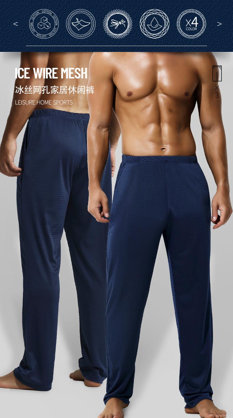 Pantalones de pijama de seda de hielo de verano para hombre, pantalones casuales, pantalones con aire acondicionado, pantalones finos de primavera y otoño, pantalones holgados de talla grande para el hogar de verano para uso exterior