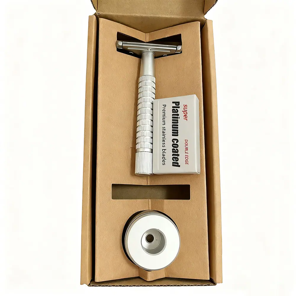 Embalaje de caja de piel de vaca (maquinilla de afeitar + 10 cuchillas + base)