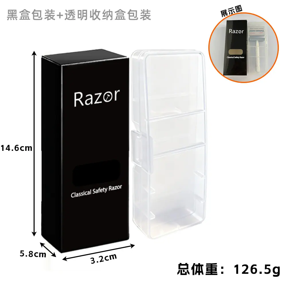 Caja negra + embalaje de caja de almacenamiento (maquinilla de afeitar + 10 cuchillas + base)