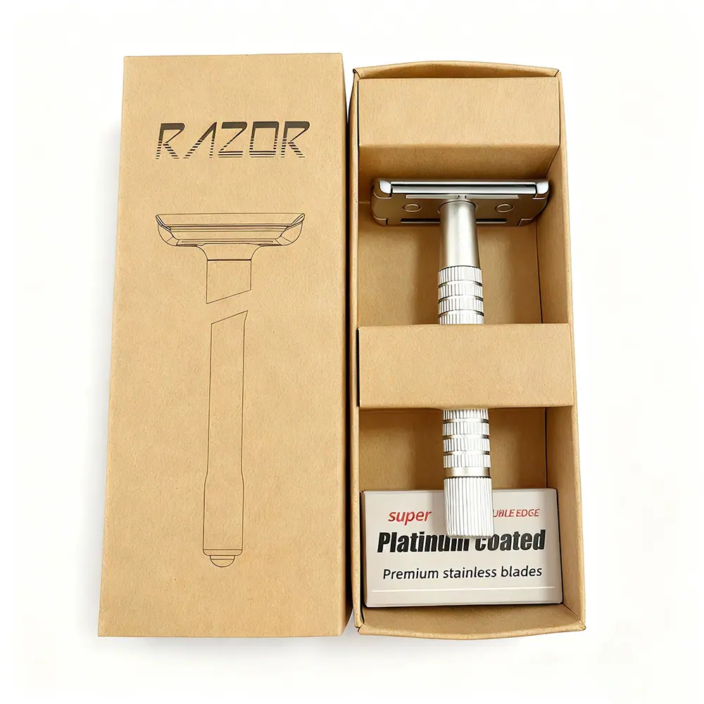 Embalaje de caja de piel de vaca (rastrillo + 10 cuchillas)