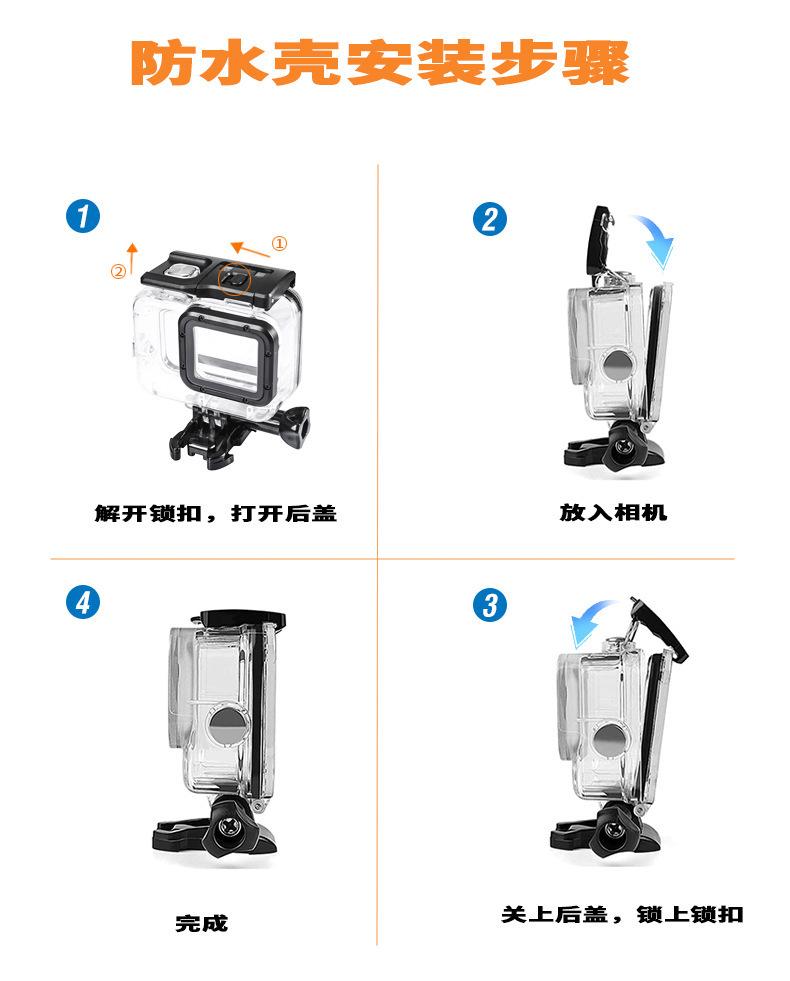Aplicable a accesorios Gopro 5/6/7 carcasa impermeable táctil para cámara deportiva, carcasa impermeable para buceo, carcasa protectora resistente a caídas