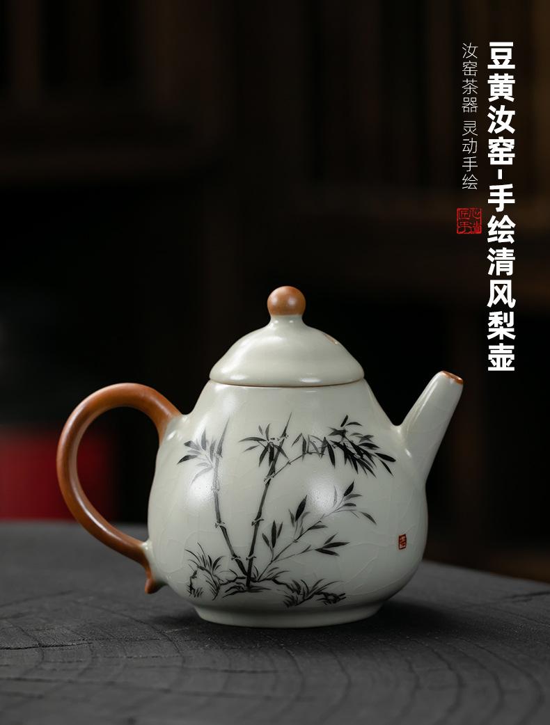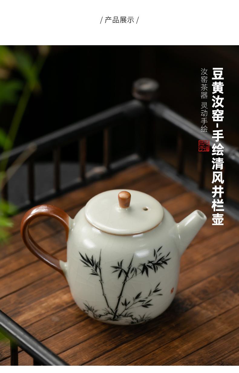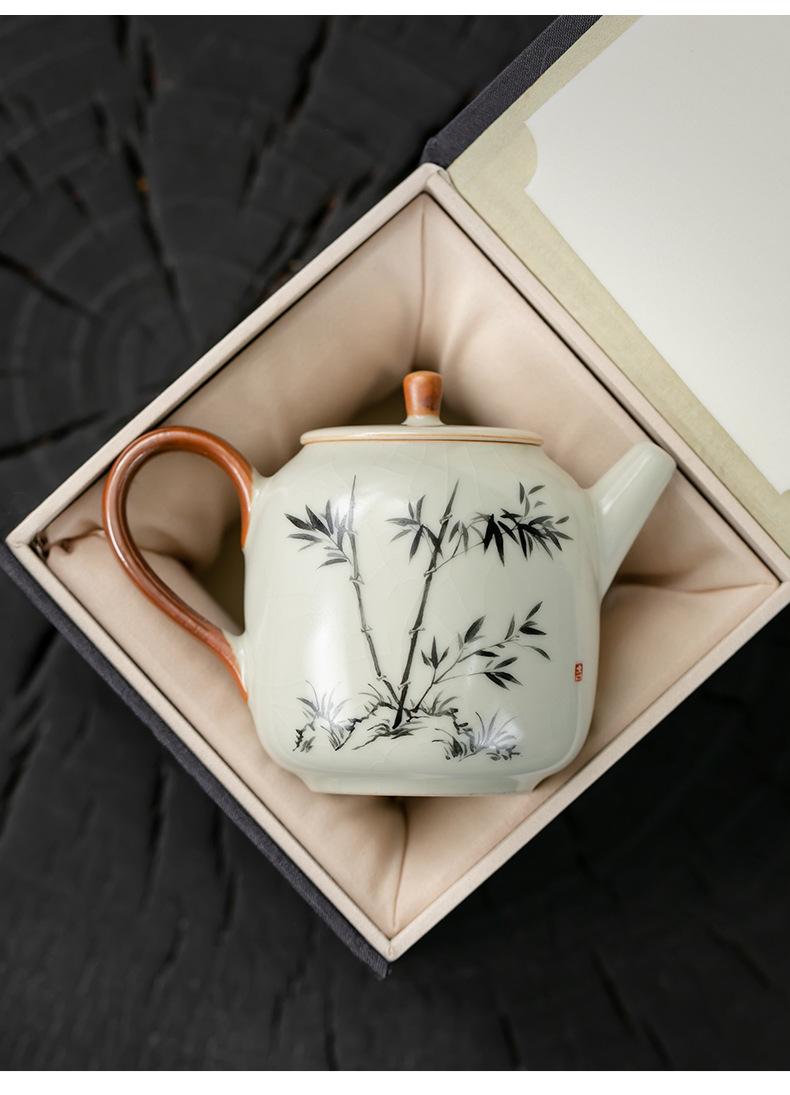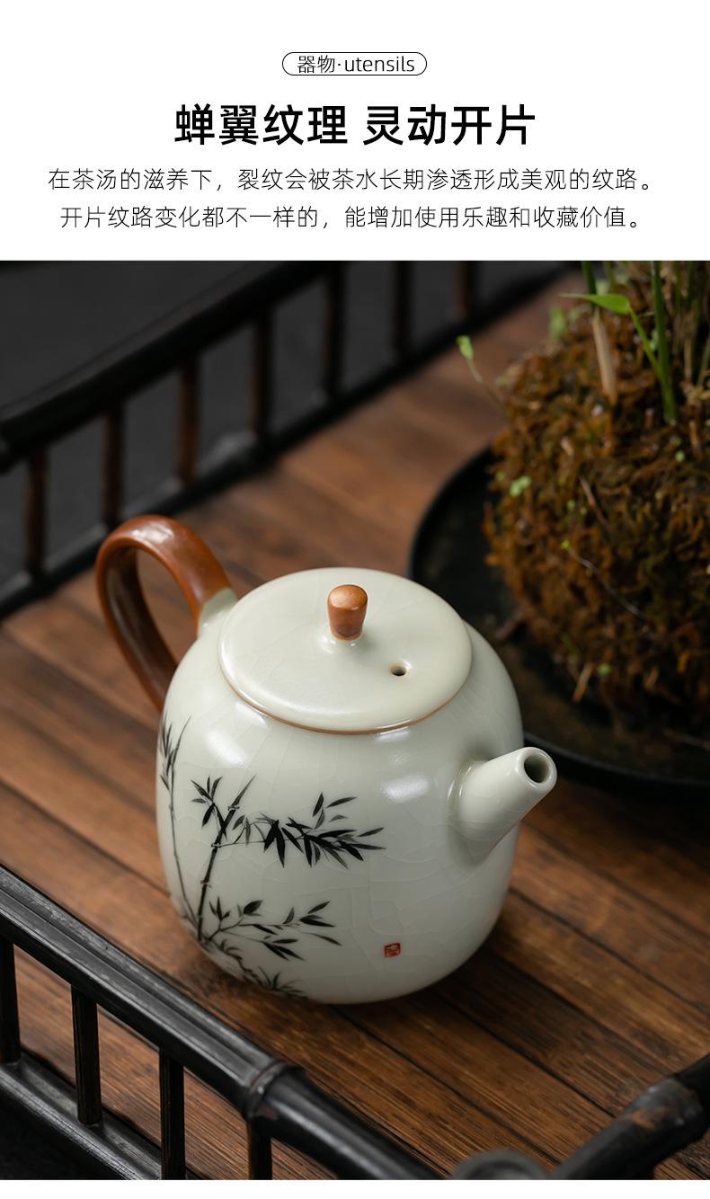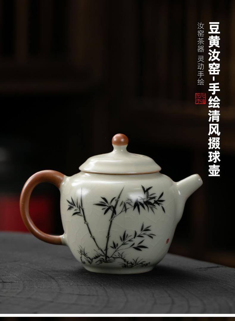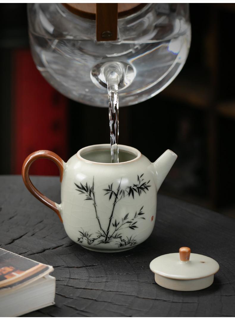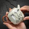 Compra Nueva tetera Xi Shi de cerámica de pieza abierta estilo chino beige Ru kiln pintada a mano con tinta de bambú puede criar tetera individual de kung fu de alta gama al por mayor en Joom.pro