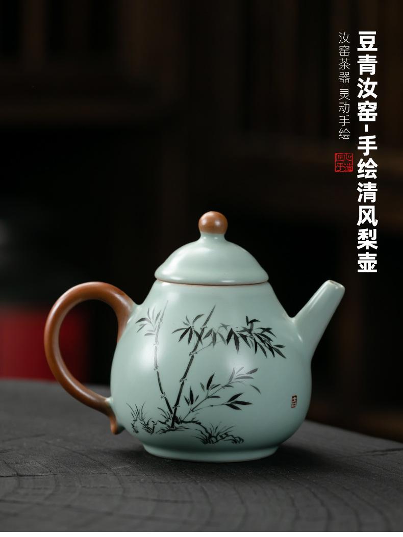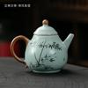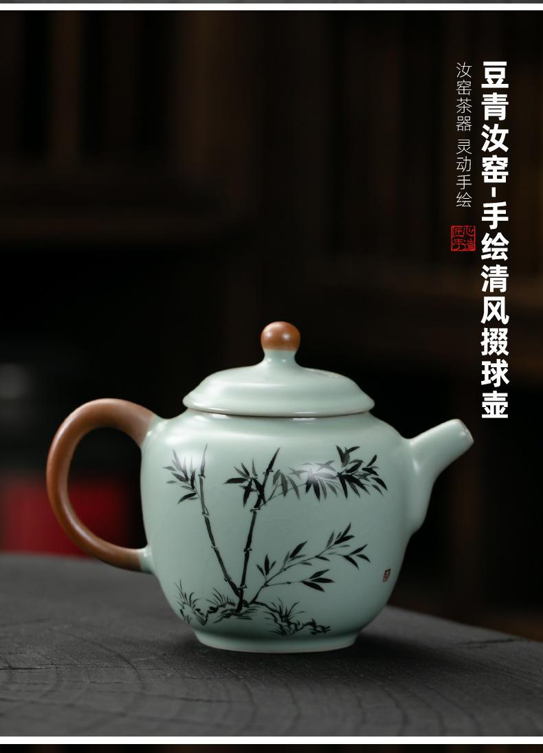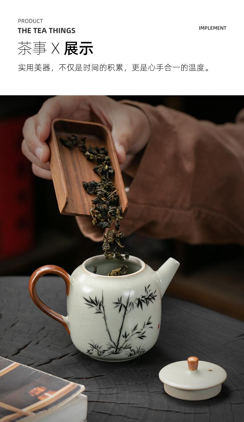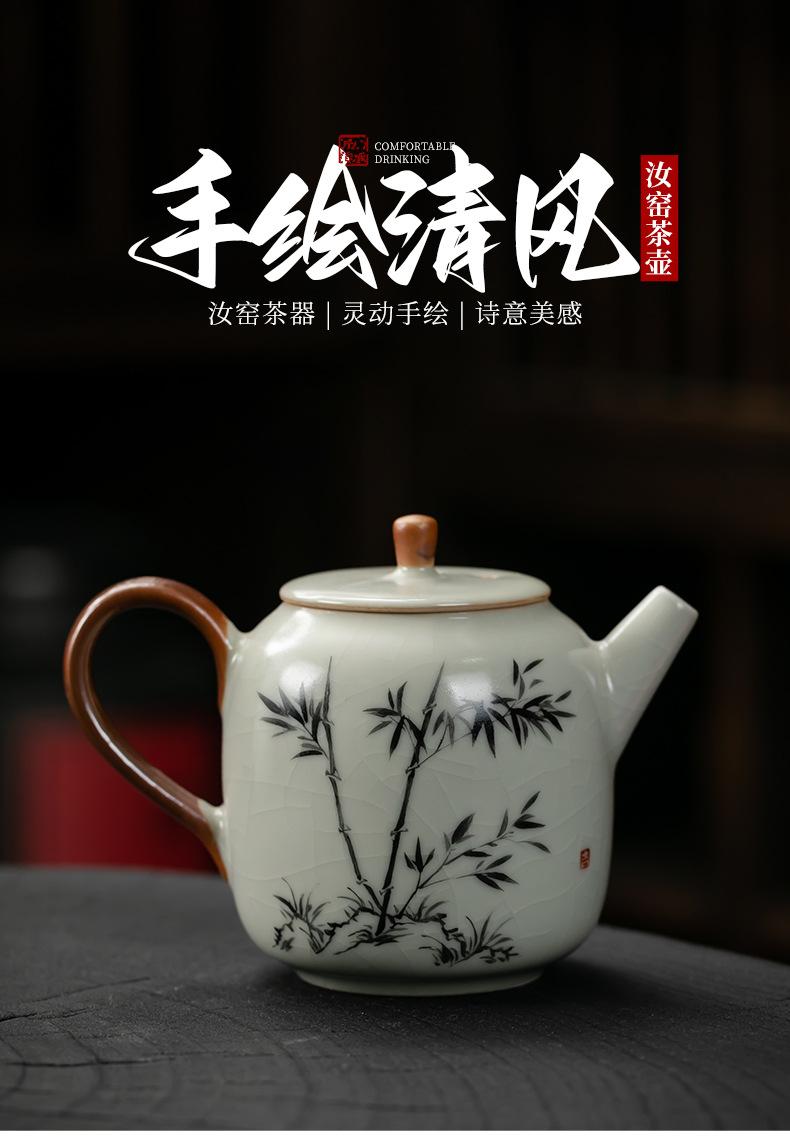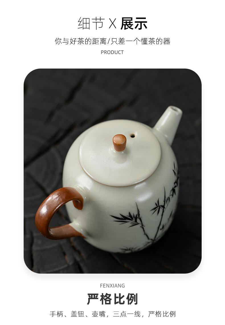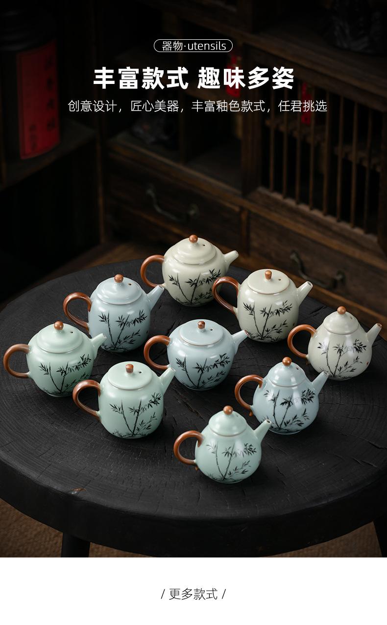 Compra Nueva tetera Xi Shi de cerámica de pieza abierta estilo chino beige Ru kiln pintada a mano con tinta de bambú puede criar tetera individual de kung fu de alta gama al por mayor en Joom.pro