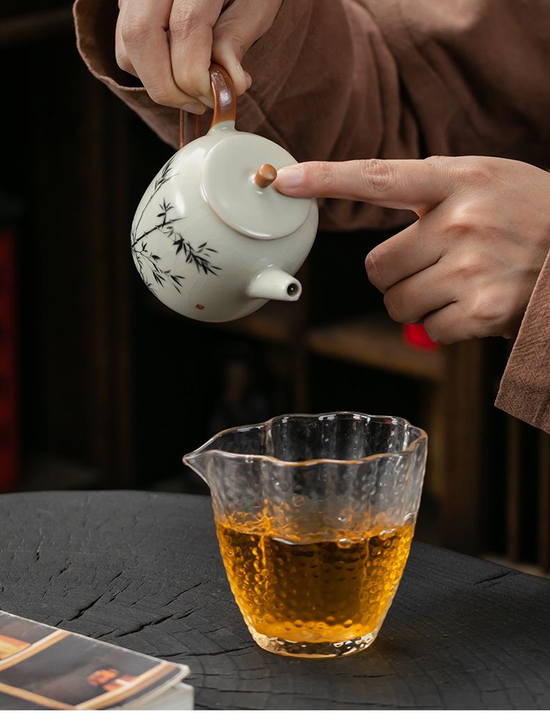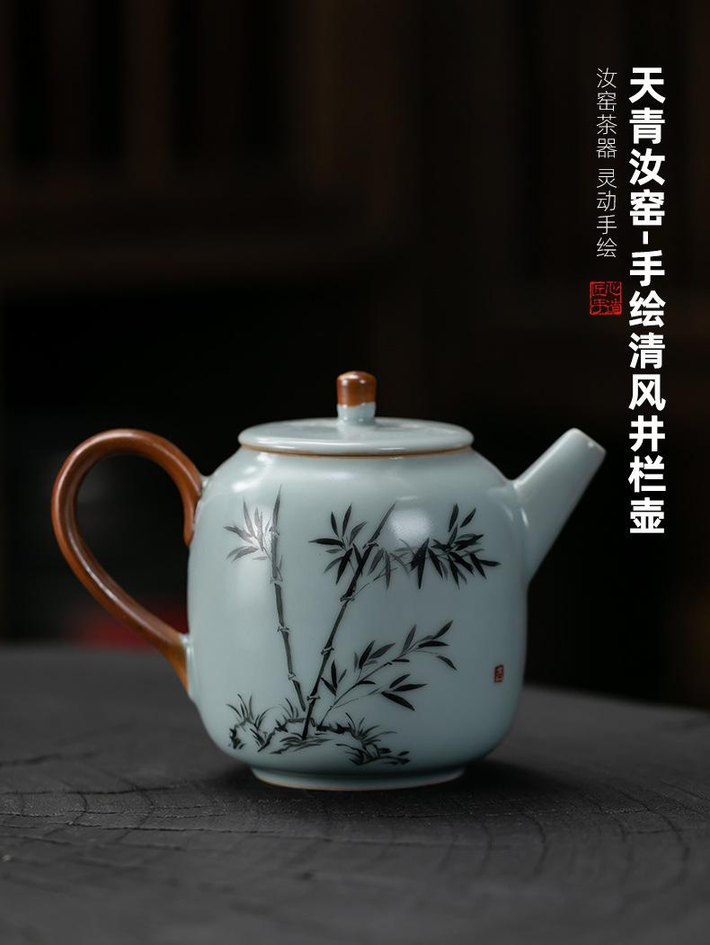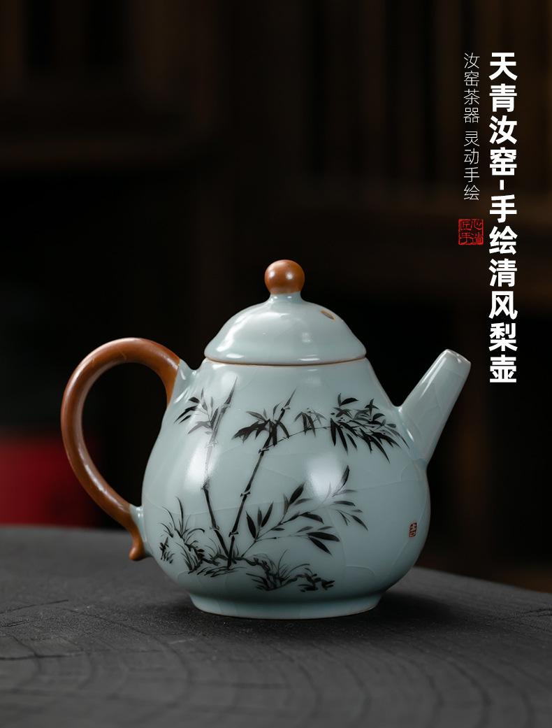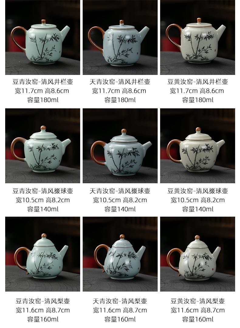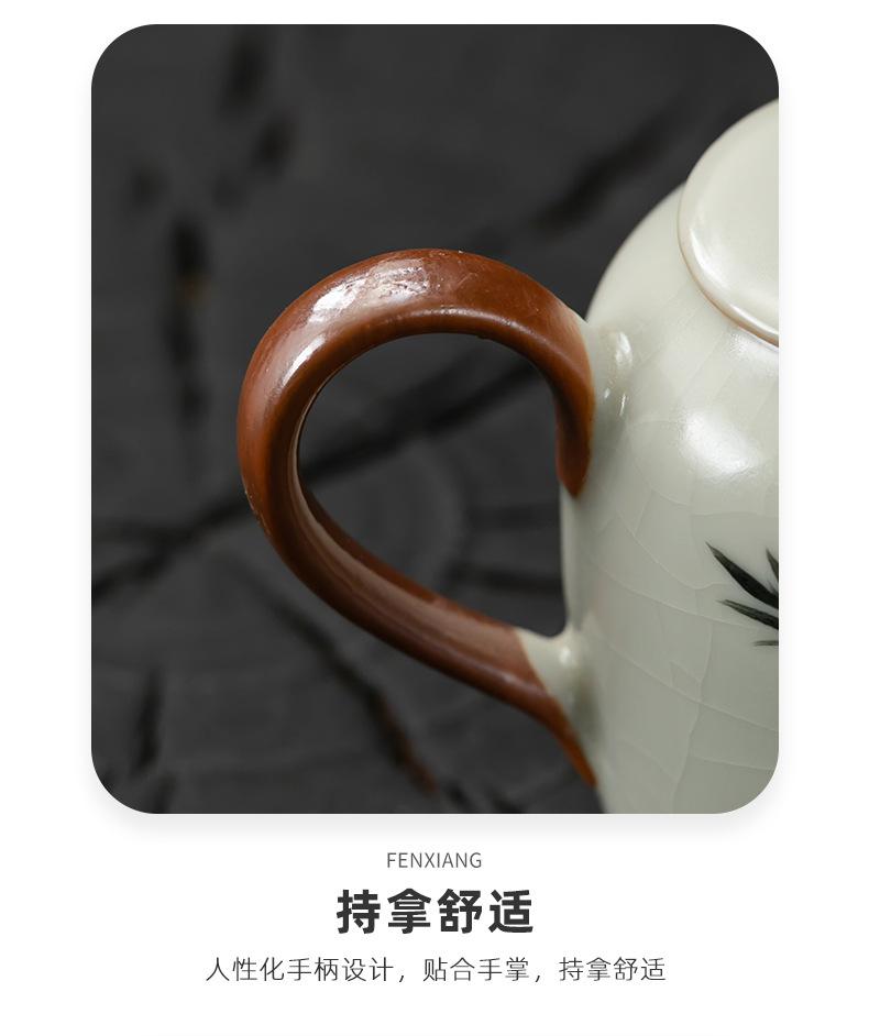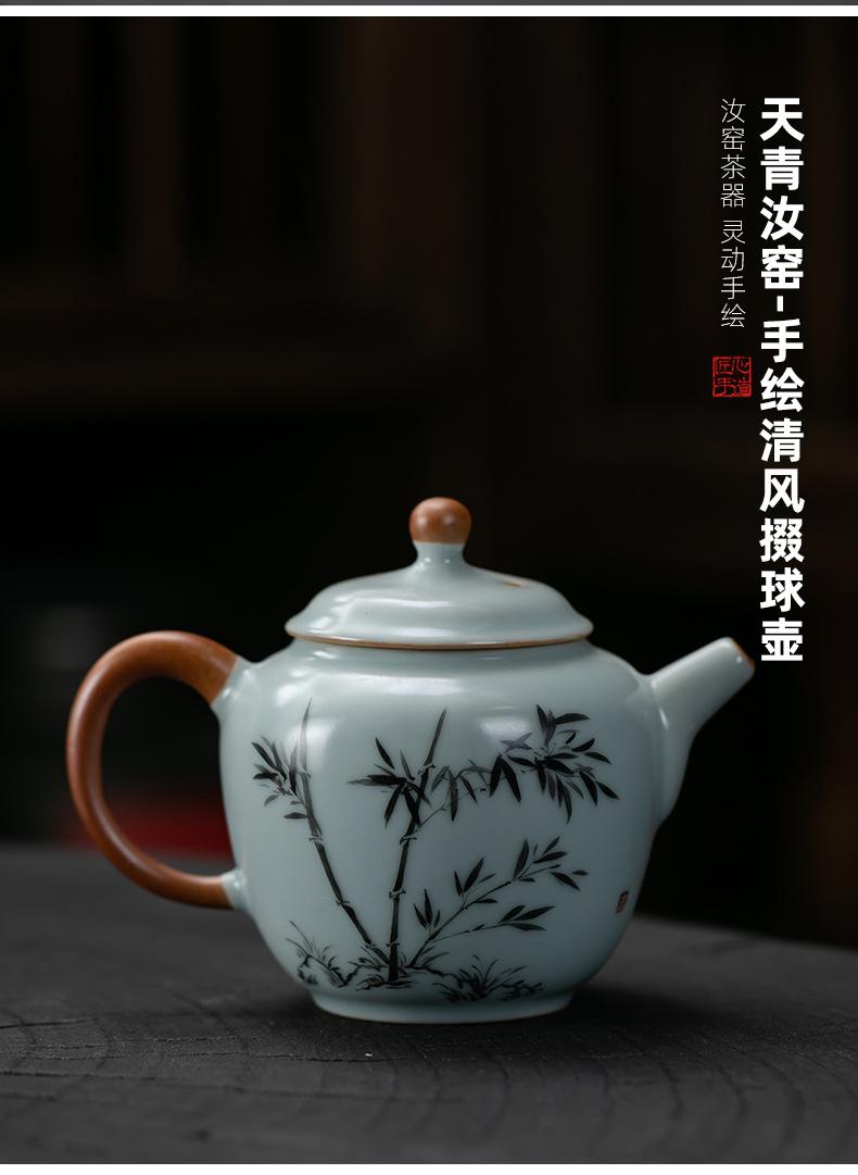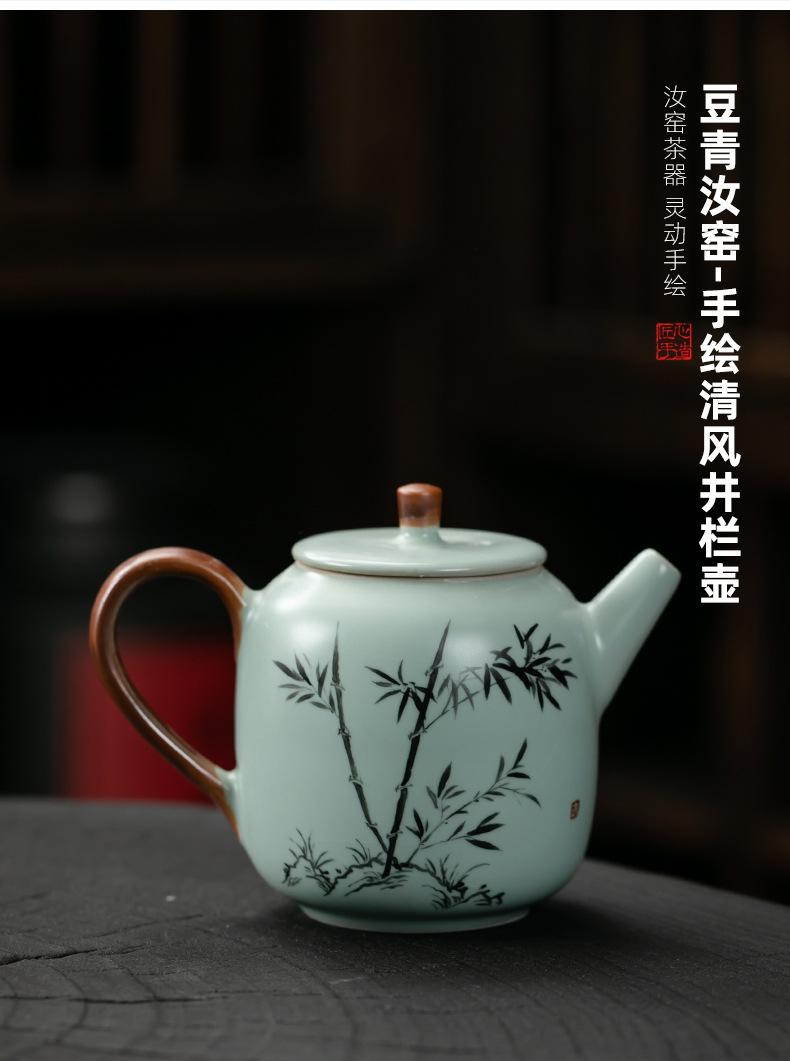 Compra Nueva tetera Xi Shi de cerámica de pieza abierta estilo chino beige Ru kiln pintada a mano con tinta de bambú puede criar tetera individual de kung fu de alta gama al por mayor en Joom.pro