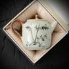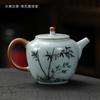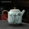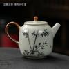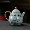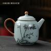 Nueva tetera Xi Shi de cerámica de pieza abierta estilo chino beige Ru kiln pintada a mano con tinta de bambú puede criar tetera individual de kung fu de alta gama