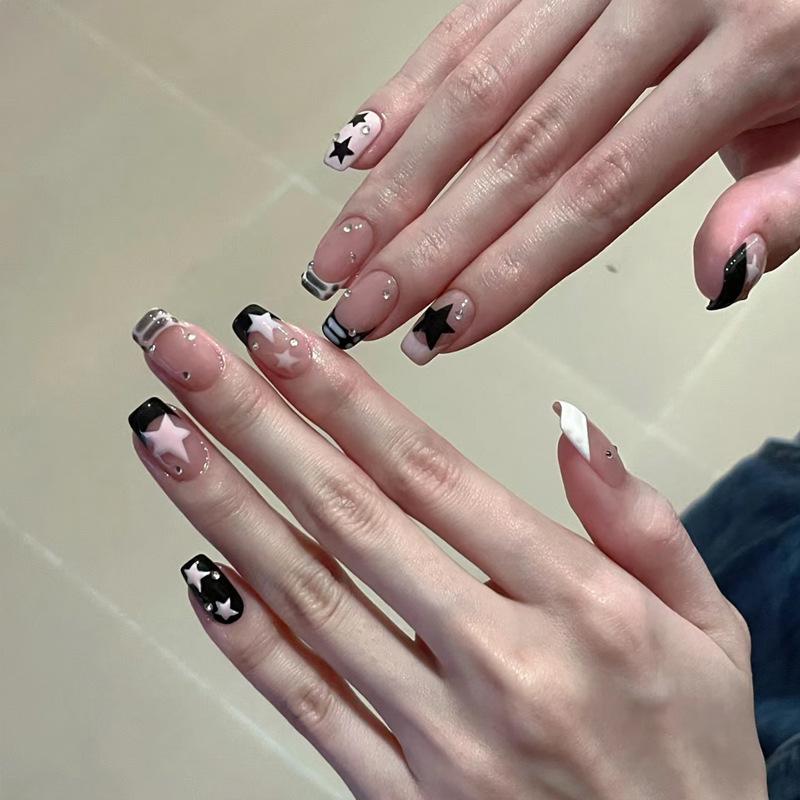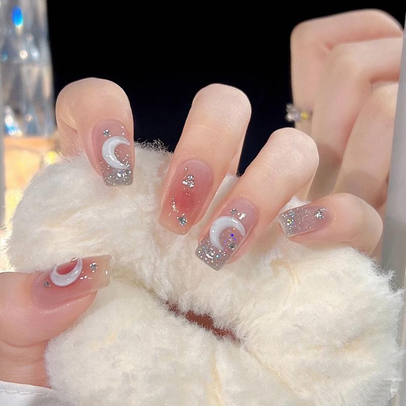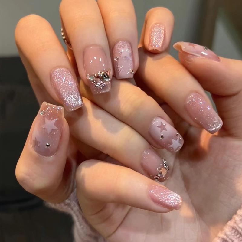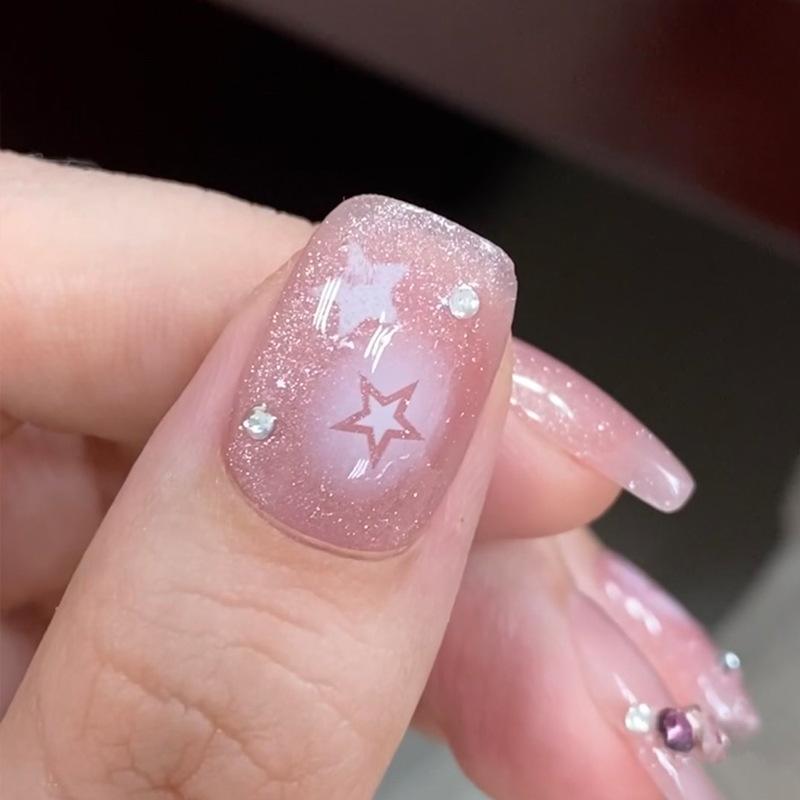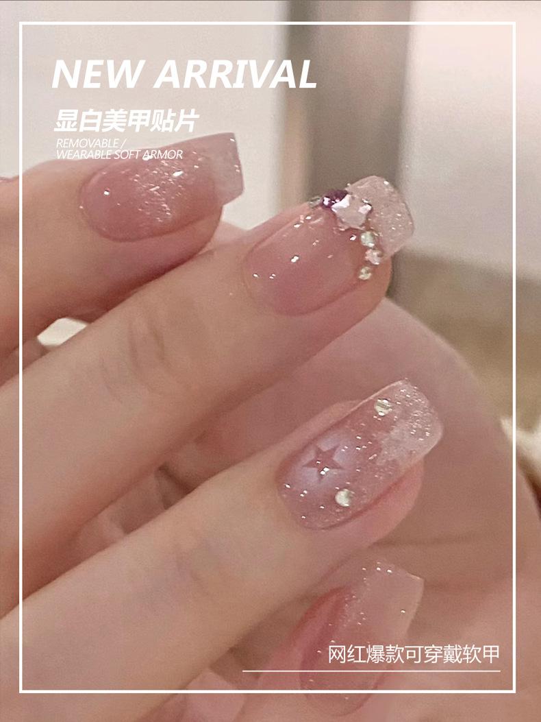 Armadura usada a mano al por mayor, hielo corto a través de estrellas, cadena de diamantes, pegatinas para uñas, pieza de uña, parche de uña con brillo blanco terminado